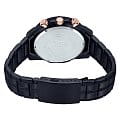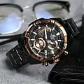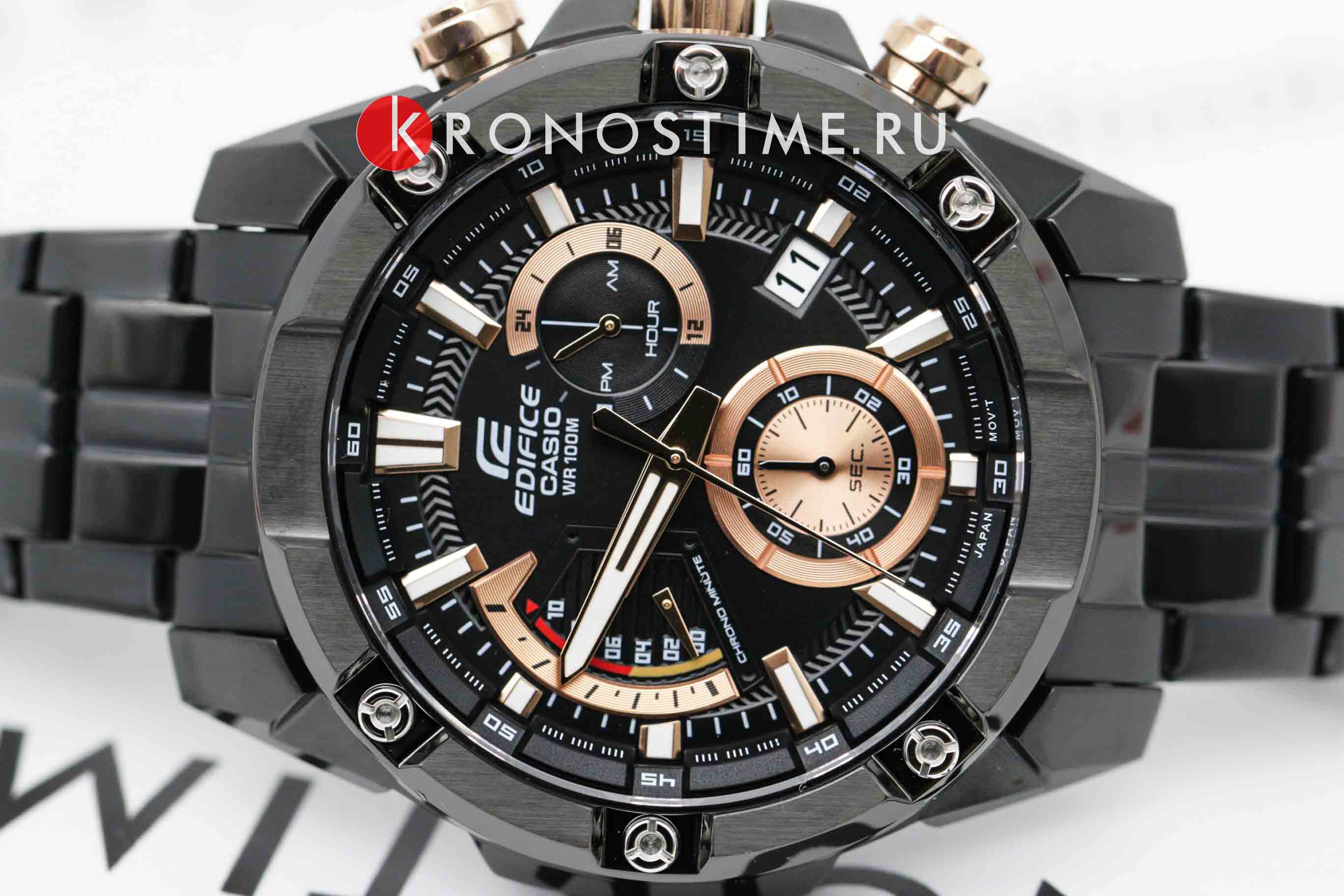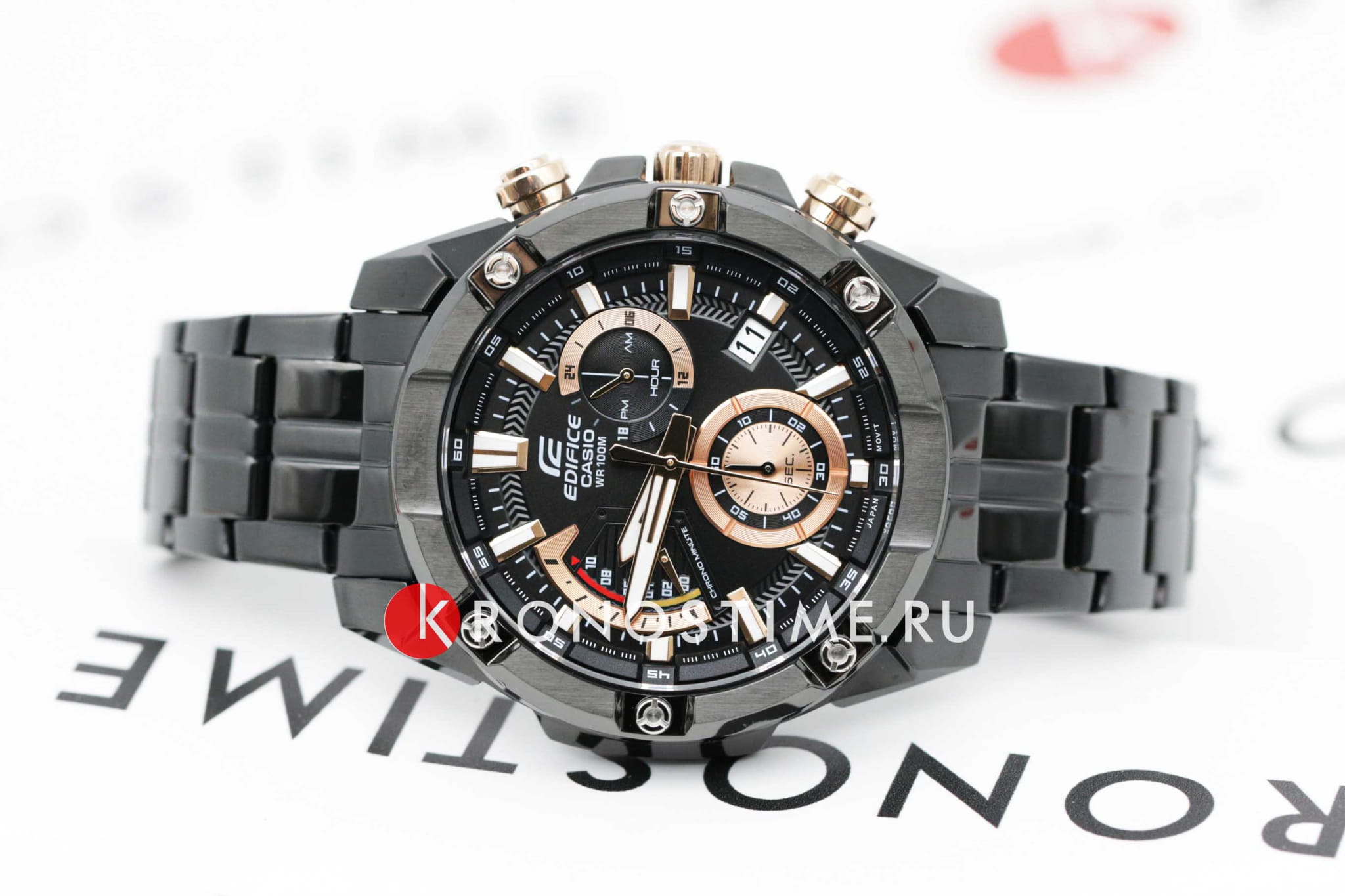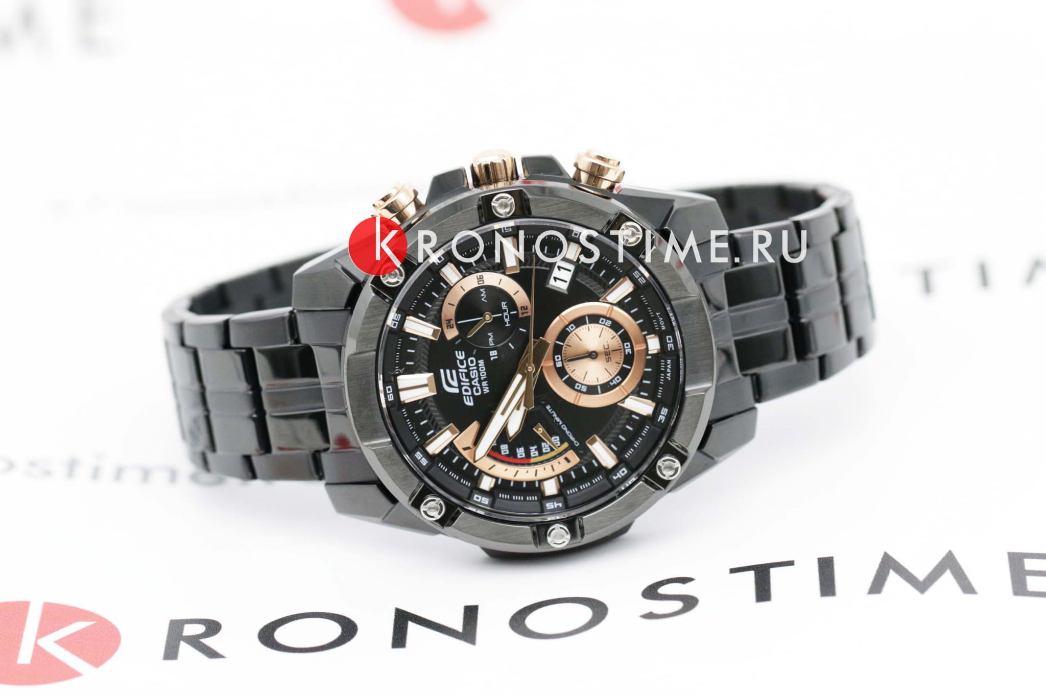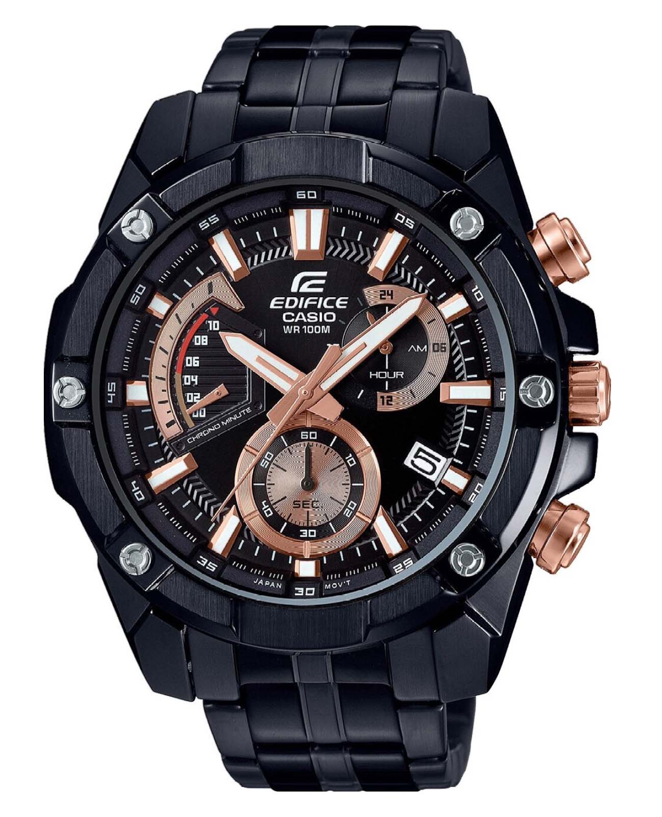 Японские мужские часы c хронографомХронографФункция позволяет измерять отрезки времени с особой точностью: часы, минуты, секунды. Верным признаком хронографа является наличие на циферблате 3 дополнительных окошек-счётчиков. Casio Edifice EFR-559DC-1A, кварцевый механизм с высокой точностью. Класс водозащиты: 100 метров, позволит плавать, нырять и заниматься другими водными видами спорта. Корпус часов изготовлен из стали с IP-покрытиемIP-покрытиеМетод ионного напыления. Демонстрирует повышенную устойчивость к истиранию, окислению и химическим веществам. Под воздействием высокого давления и температуры около 1500°C молекулы металла надёжно соединяются с частицами корпуса часов. черного цвета. Стрелки и метки с люминесцентным покрытиемЛюминесцентное покрытиеПозволяет считывать показания времени в темноте. Производители наносят на стрелки, часовые индексы, безель или поверхность циферблата светонакопительный состав, дающий холодное свечение.. Минеральное стеклоМинеральное стеклоМинеральное стекло представляет собой искусственно выращенный минерал кварца. Такое стекло отличается особой устойчивостью к повреждениям и царапинам. Уступает по некоторым качествам сапфировому стеклу.. Завинчивающаяся задняя крышка. Заводная головка с защитой. Браслет выполнен из нержавеющей стали с IP-покрытиемIP-покрытиеМетод ионного напыления. Демонстрирует повышенную устойчивость к истиранию, окислению и химическим веществам. Под воздействием высокого давления и температуры около 1500°C молекулы металла надёжно соединяются с частицами корпуса часов..