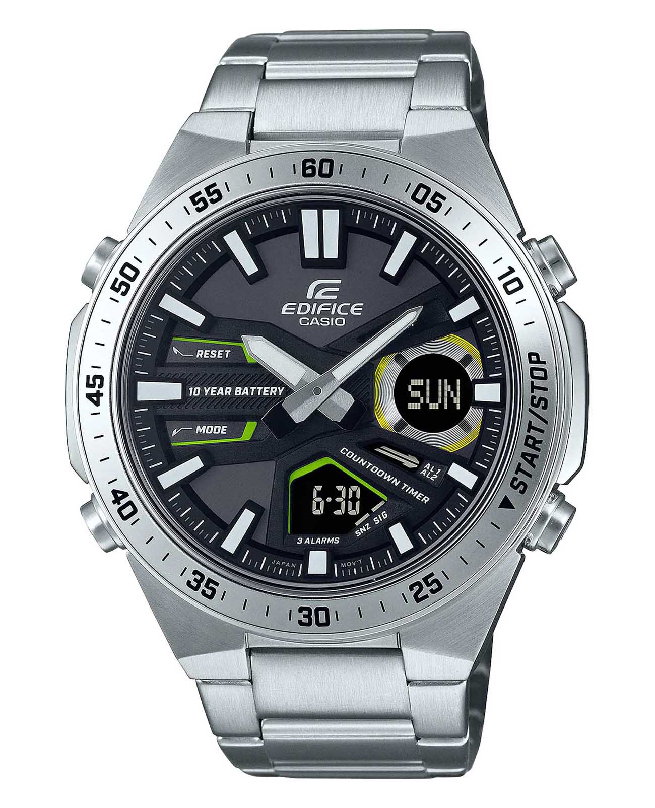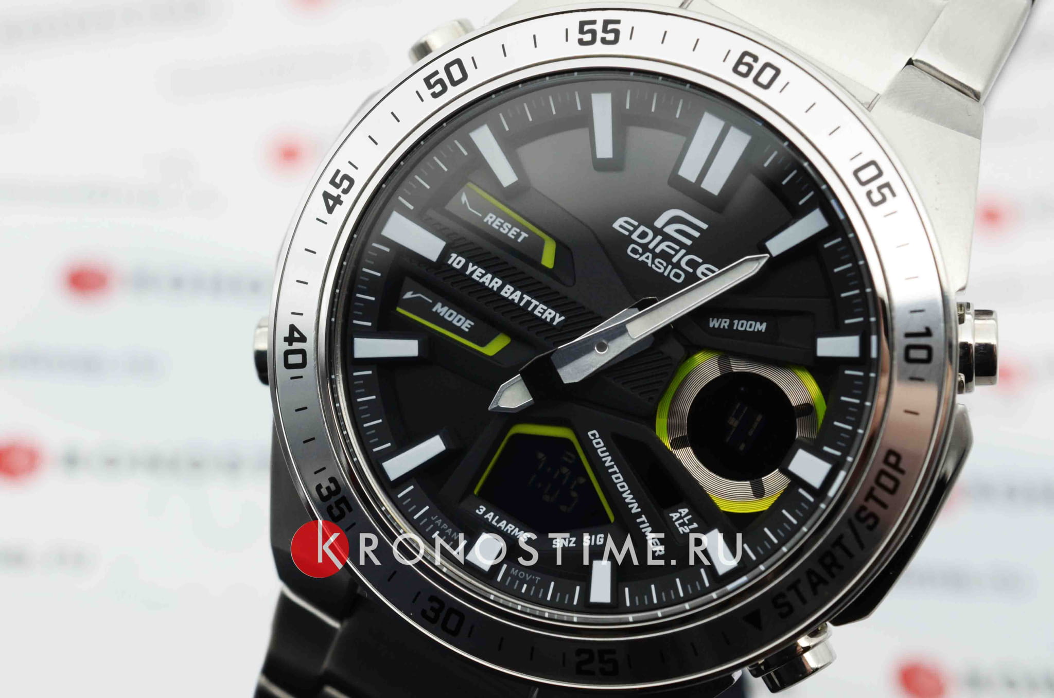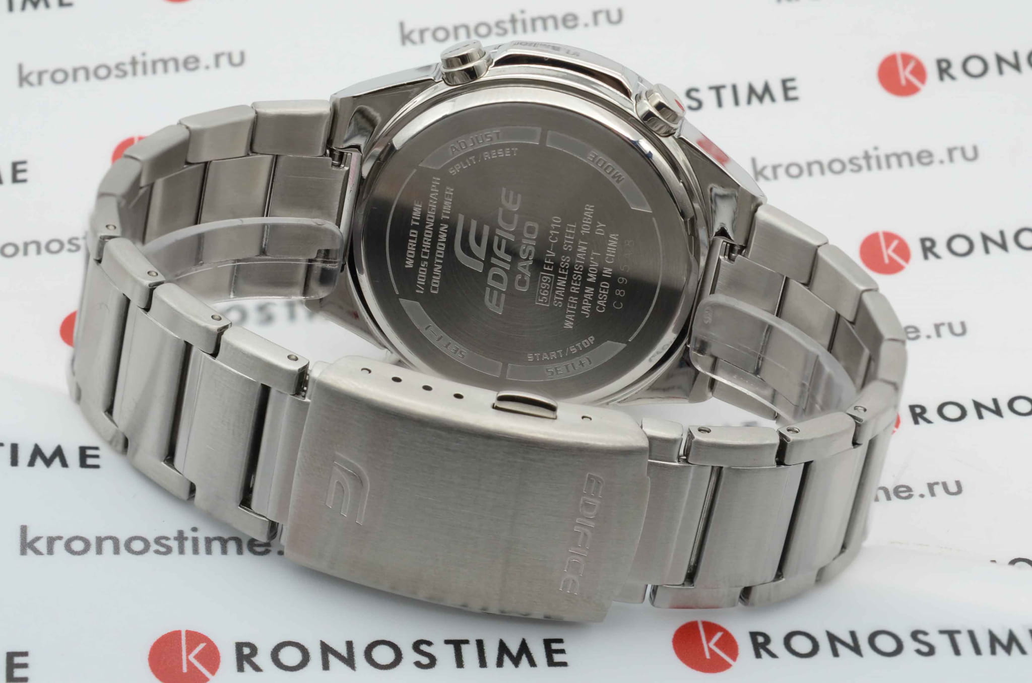 Японские мужские часы-хронографХронографФункция позволяет измерять отрезки времени с особой точностью: часы, минуты, секунды. Верным признаком хронографа является наличие на циферблате 3 дополнительных окошек-счётчиков. Casio Edifice EFV-C110D-1A3VEF. Минеральное стеклоМинеральное стеклоМинеральное стекло представляет собой искусственно выращенный минерал кварца. Такое стекло отличается особой устойчивостью к повреждениям и царапинам. Уступает по некоторым качествам сапфировому стеклу. устойчивое к появлению царапин, обладающее высокой прозрачностью. Корпус часов изготовлен из нержавеющей стали. Светодиодная автоподсветка NeobriteПодсветка NeobriteИспользование светонакопительных составов на основе сульфида цинка или алюмината стронция, яркий свет можно наблюдать на протяжении 6-10 часов после «зарядки» часов около источника света. - при повороте часов в сторону лица подсветка дисплея осуществляется автоматически. Настраиваемое послесвечение 1,5 или 3сек. СекундомерСекундомерСекундоме́р — прибор, способный измерять интервалы времени с точностью до долей секунды. с точностью измерения 1/100 секунды и измерением до 23 часов 59 минут 59,99 cек. ТаймерТаймерОтсчитывает секунды в обратном направлении в заданном интервале времени. обратного отсчета (диапазон времени 24 часа), автоматический календарь, 12/24 отображение времени. Мировое времяМировое время Полезное часовое усложнение, отображающее время в основных городах и известных областях по всему миру, оно связано с часовыми поясами, удобно для путешественников и бизнесменов. – 30 городов (29 часовых поясов). 3 будильникаБудильникБуди́льник — часы, в заданный момент времени подающие звуковой, световой и/или в редких случаях другой сигнал., один с функцией Snooze, ежечасный сигнал. Записная книжка на 30 ячеек памяти для записи имен и телефонных номеров, каждая запись может включать в себя текст из 8 букв и 16 цифр. Класс водозащиты: 100 метров, позволит плавать, нырять и заниматься другими водными видами спорта. Стальной браслет на раскладной застёжкеРаскладная застёжкаТакой тип застёжки используется только на браслетах из металла. Она никогда не раскрывается полностью, происходит разделение на 2 и более частей. Раскладывающая застёжка снизит вероятность потери часов к минимуму..