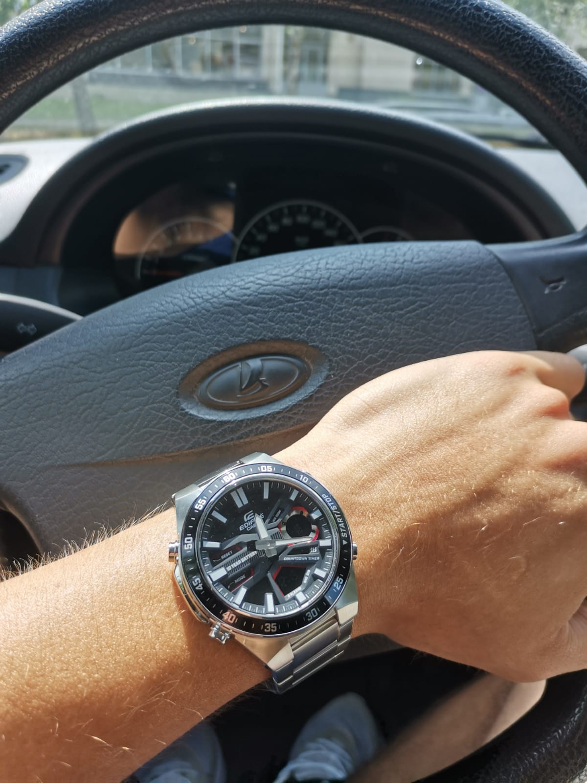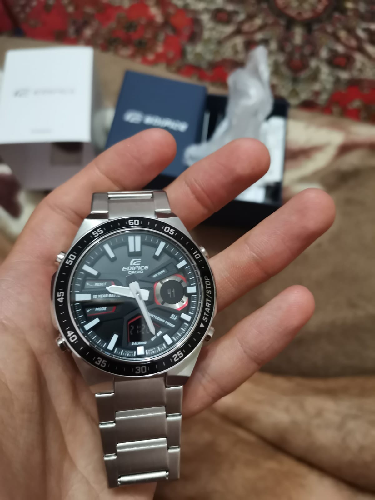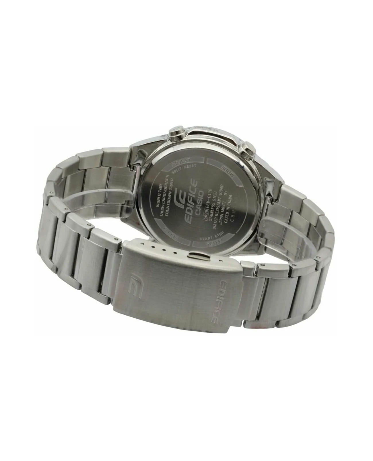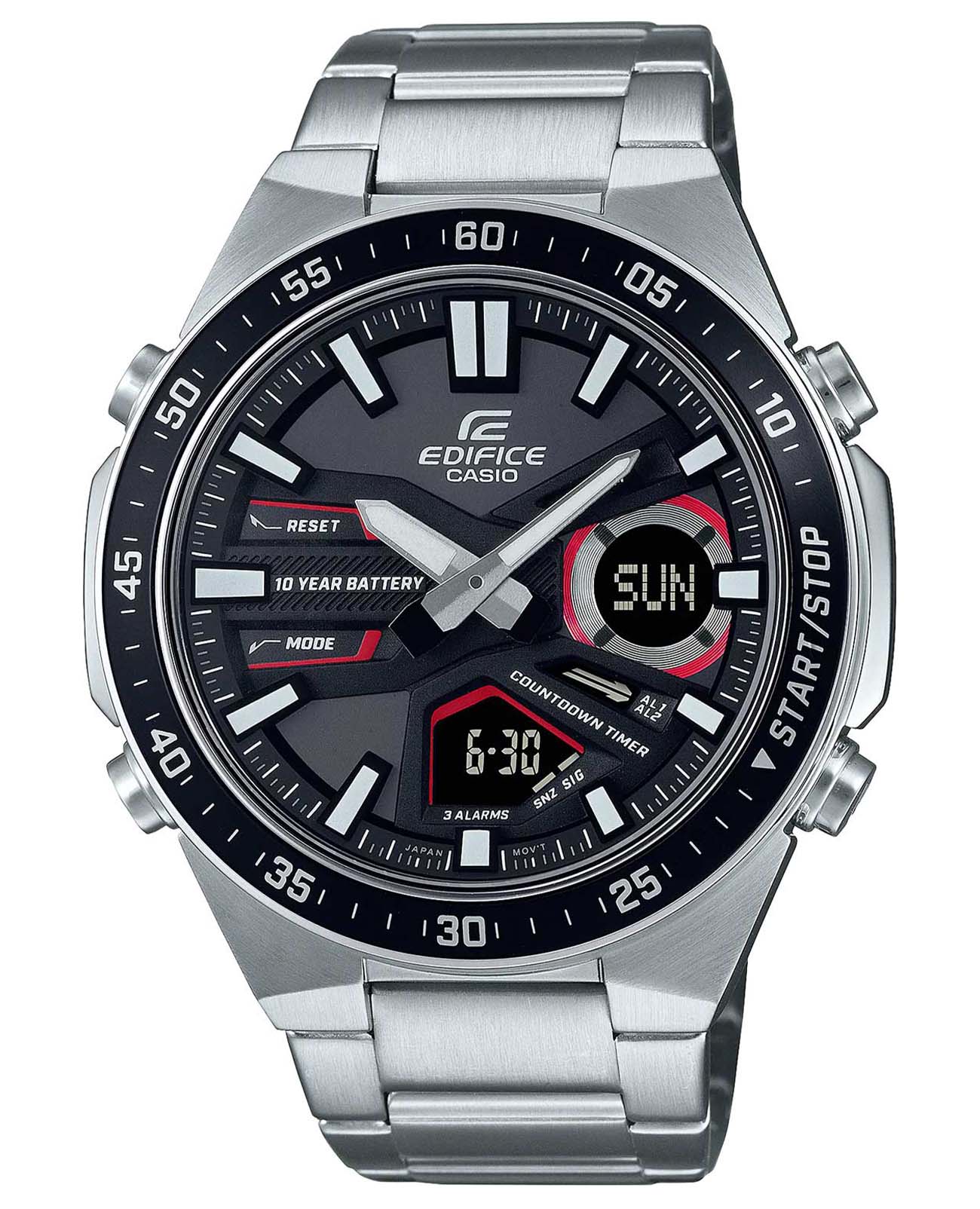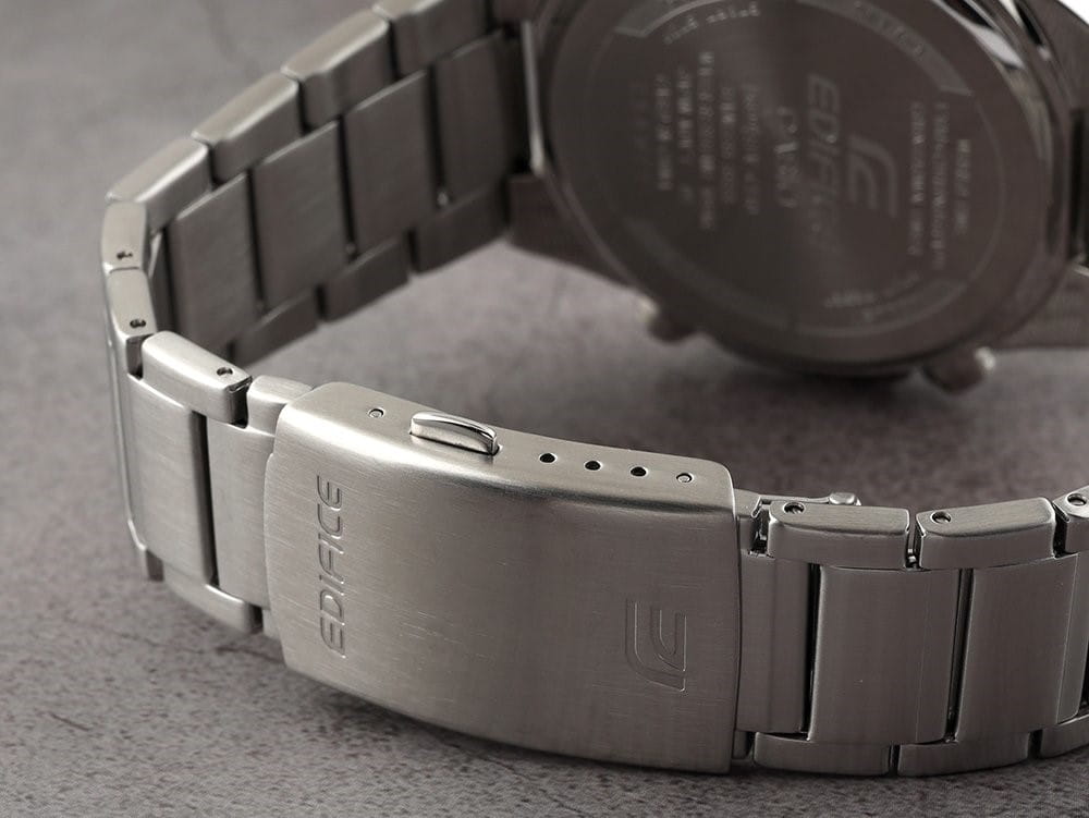 Японские мужские часы-хронографХронографФункция позволяет измерять отрезки времени с особой точностью: часы, минуты, секунды. Верным признаком хронографа является наличие на циферблате 3 дополнительных окошек-счётчиков. Casio Edifice EFV-C110D-1A4. Минеральное стеклоМинеральное стеклоМинеральное стекло представляет собой искусственно выращенный минерал кварца. Такое стекло отличается особой устойчивостью к повреждениям и царапинам. Уступает по некоторым качествам сапфировому стеклу. устойчивое к появлению царапин, обладающее высокой прозрачностью. Копрус часов изготовлен из нержавеющей стали с IP-покрытиемIP-покрытиеМетод ионного напыления. Демонстрирует повышенную устойчивость к истиранию, окислению и химическим веществам. Под воздействием высокого давления и температуры около 1500°C молекулы металла надёжно соединяются с частицами корпуса часов.. Светодиодная автоподсветка NeobriteПодсветка NeobriteИспользование светонакопительных составов на основе сульфида цинка или алюмината стронция, яркий свет можно наблюдать на протяжении 6-10 часов после «зарядки» часов около источника света. - при повороте часов в сторону лица подсветка дисплея осуществляется автоматически. Настраиваемое послесвечение 1,5 или 3 сек. Записная книжка на 30 ячеек памяти для записи имен и телефонных номеров, каждая запись может включать в себя текст из 8 букв и 16 цифр. СекундомерСекундомерСекундоме́р — прибор, способный измерять интервалы времени с точностью до долей секунды. с точностью измерения 1/100 секунды и измерением до 23 часов 59 минут 59,99 cек. ТаймерТаймерОтсчитывает секунды в обратном направлении в заданном интервале времени. обратного отсчета (диапазон времени 24 часа), автоматический календарь, 12/24 отображение времени. Мировое времяМировое время Полезное часовое усложнение, отображающее время в основных городах и известных областях по всему миру, оно связано с часовыми поясами, удобно для путешественников и бизнесменов. – 30 городов (29 часовых поясов). 5 будильниковБудильникБуди́льник — часы, в заданный момент времени подающие звуковой, световой и/или в редких случаях другой сигнал., один с функцией Snooze, ежечасный сигнал. Класс водозащиты: 100 метров, позволит плавать, нырять и заниматься другими водными видами спорта. Стальной браслет с IP-покрытиемIP-покрытиеМетод ионного напыления. Демонстрирует повышенную устойчивость к истиранию, окислению и химическим веществам. Под воздействием высокого давления и температуры около 1500°C молекулы металла надёжно соединяются с частицами корпуса часов. на раскладной застёжкеРаскладная застёжкаТакой тип застёжки используется только на браслетах из металла. Она никогда не раскрывается полностью, происходит разделение на 2 и более частей. Раскладывающая застёжка снизит вероятность потери часов к минимуму..
