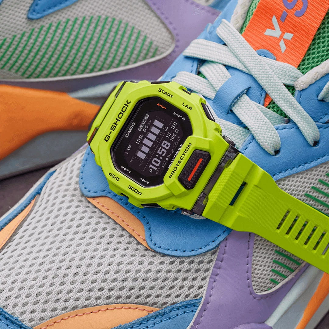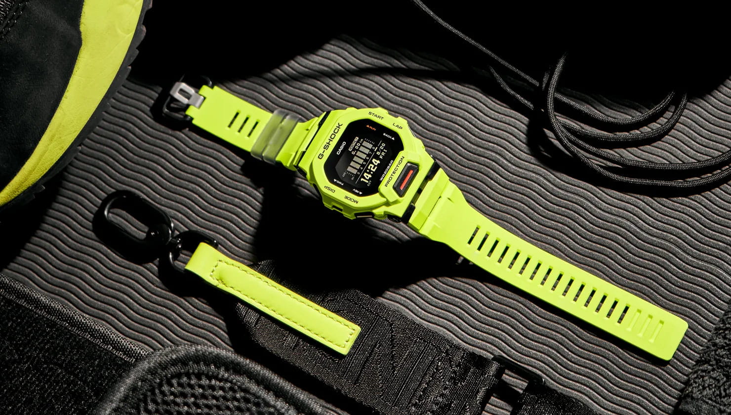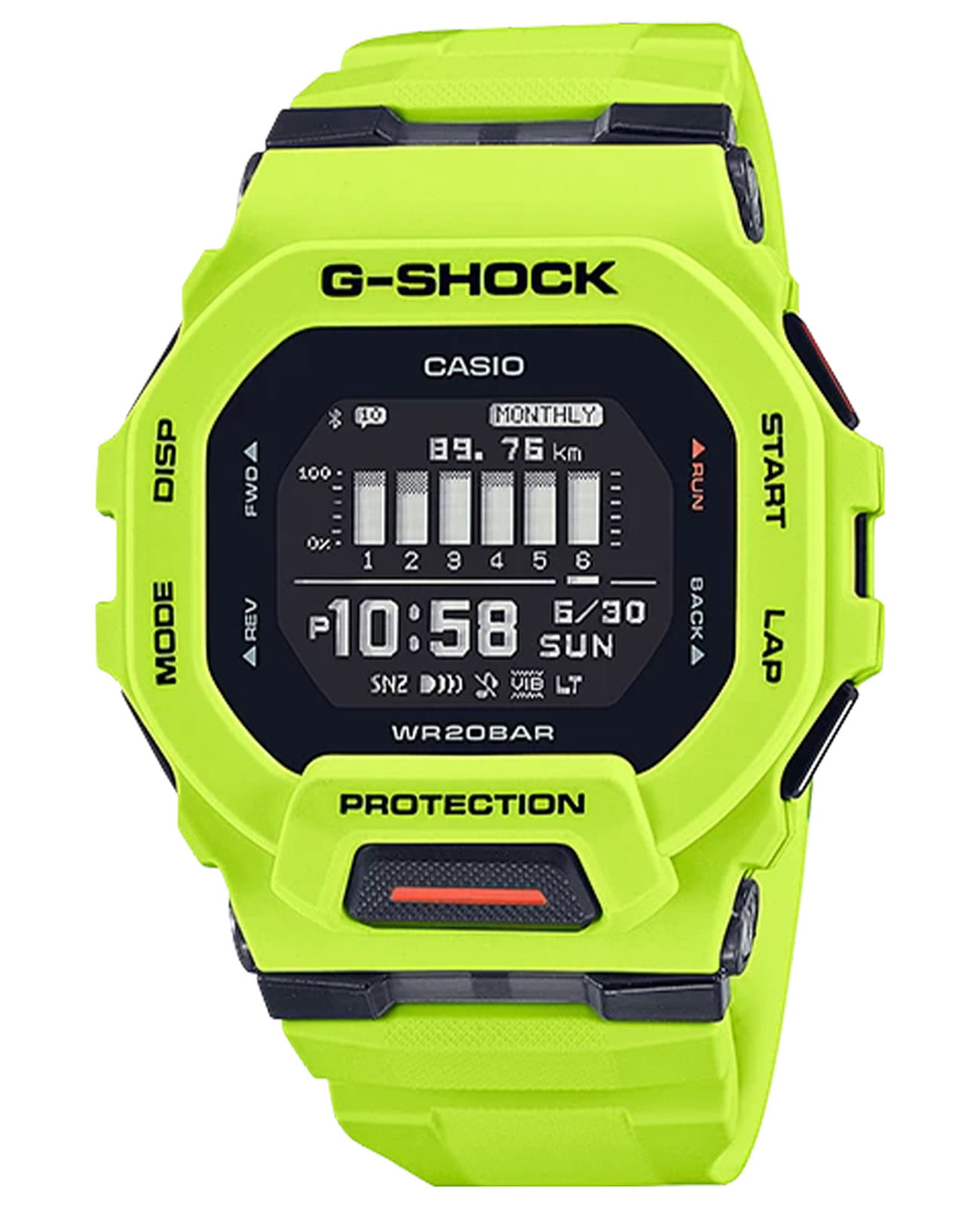 Японские мужские ударопрочные часы c функцией Bluetooth Casio G-Shock GBD-200-9, кварцевый механизм с высокой точностью. Класс водозащиты: 200 метров, позволит плавать, нырять и заниматься другими водными видами спорта. Корпус часов изготовлен из пластика ярко-зеленого цвета. Ударопрочный корпусУдаропрочный корпусМеханизм заключён в корпус, выполненный из современных материалов, устойчивых к ударам, механическим повреждениям и падению с высоты: инновационный пластик, карбон, нержавеющая сталь, титан. защищает механизм от ударов и вибрации. СекундомерСекундомерСекундоме́р — прибор, способный измерять интервалы времени с точностью до долей секунды. с точностью показаний 1с и временем измерения 99ч. Сплит-хронографСплит-хронографИспользуется для измерения продолжительности нескольких временных отрезков, начинающихся одновременно, а заканчивающихся в разное время.. Возможность установить 5 таймеров. Таймер обратного отсчета от 1сек до 1ч с автоповтором. Мировое времяМировое время Полезное часовое усложнение, отображающее время в основных городах и известных областях по всему миру, оно связано с часовыми поясами, удобно для путешественников и бизнесменов. – 38 городов (38 часовых поясов), всемирное координированное время (UTCUTCВсемирное кординационное время, не имеющее привязки к географическому положению Гринвича, основывается на атомном отсчёте времени. Регулировка времени осуществляется более точно, чем устаревшее GMT.