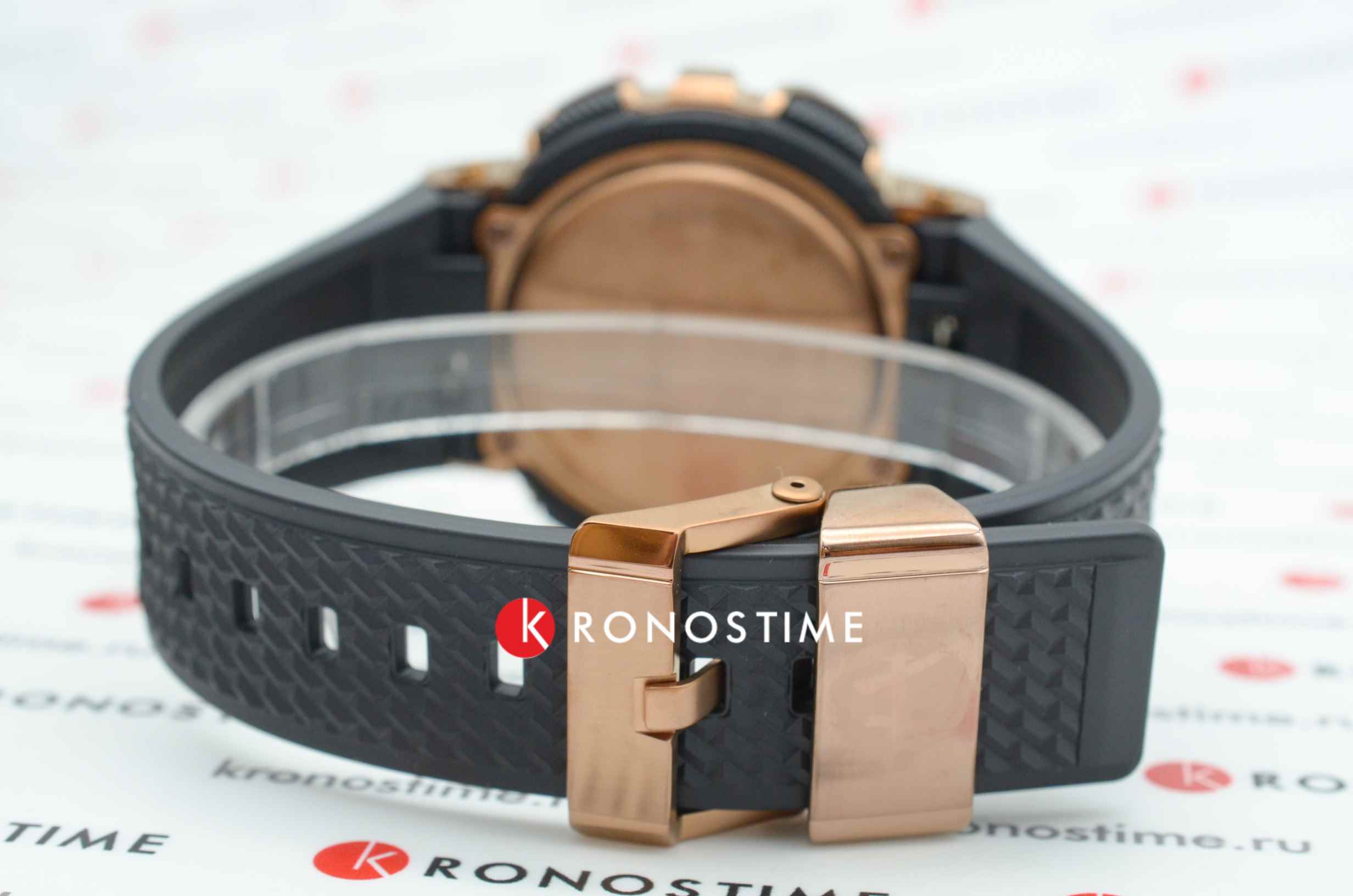 Корпус часов бронзового цвета изготовлен из нержавеющей стали с внутренним корпусом из полимерного пластика. Часы ударопрочные с водозащитой до 200 метров. Светодиодная подсветка Super Illuminator с автоматическим переключением света, возможностью выбрать продолжительность освещения (1,5 секунды или 3 секунды), послесвечение. Ремешок из полимерного материала с классической застежкой.