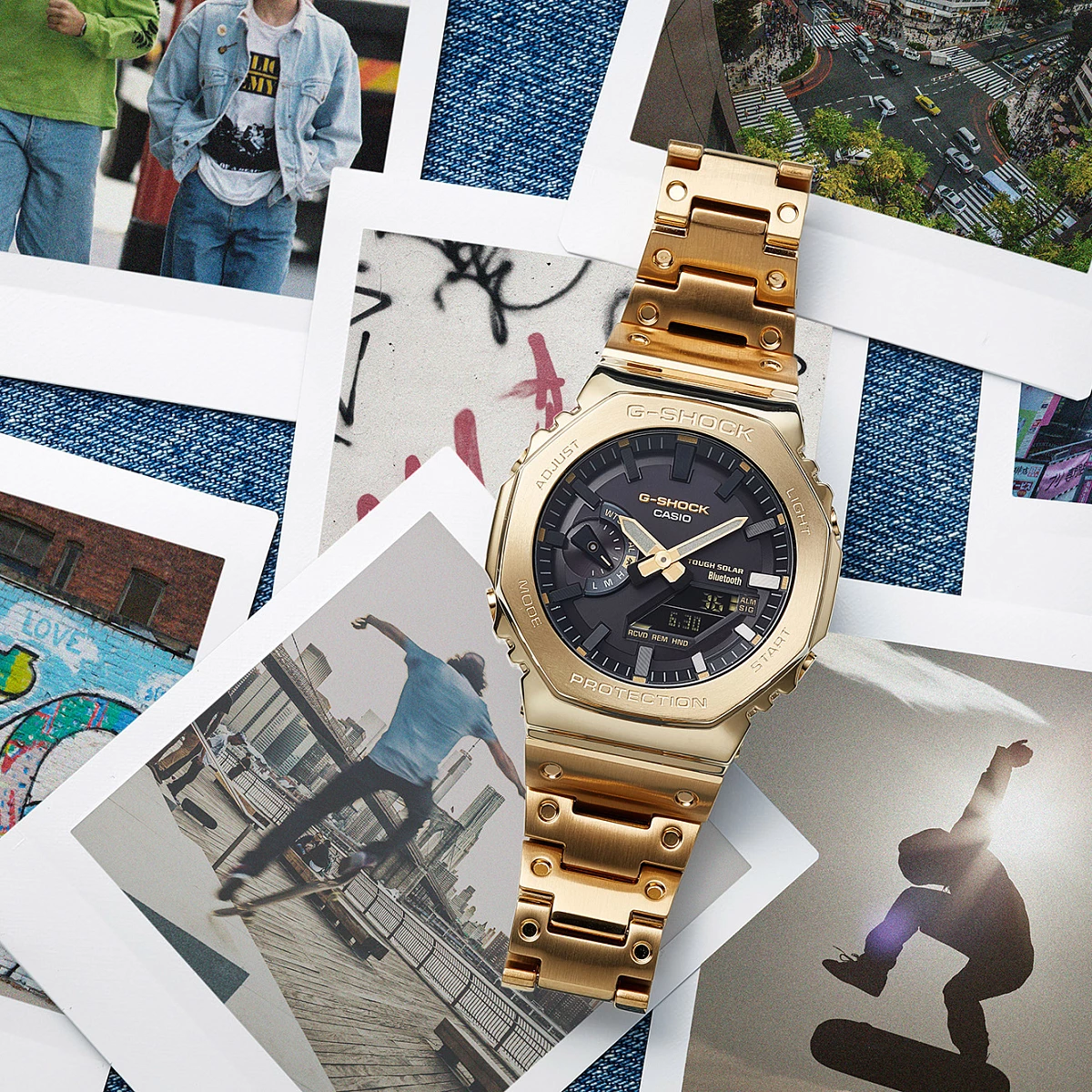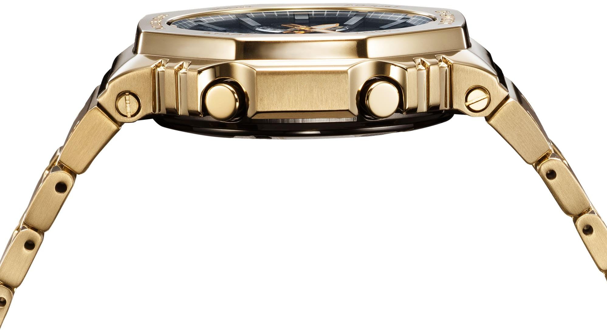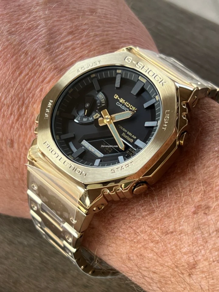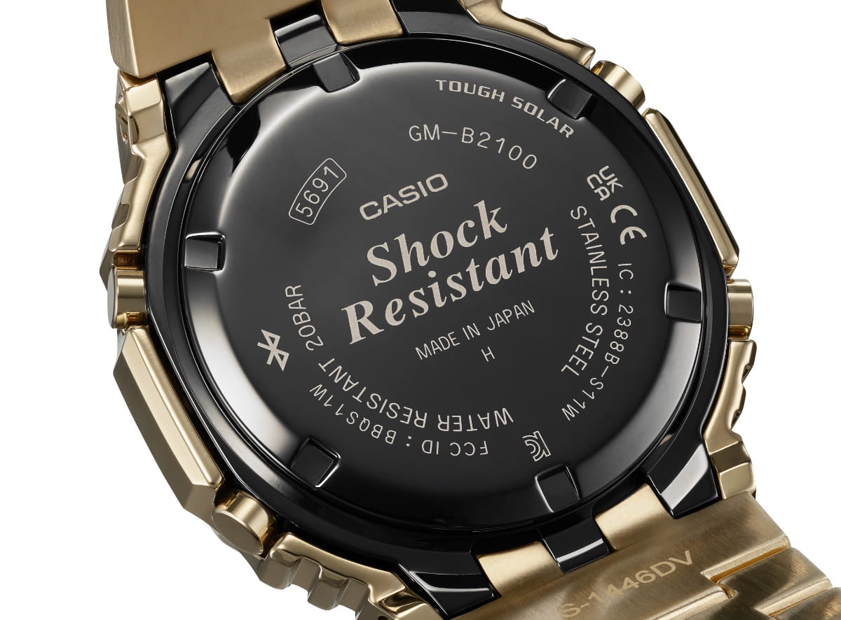 Японские мужские часы-хронографХронографФункция позволяет измерять отрезки времени с особой точностью: часы, минуты, секунды. Верным признаком хронографа является наличие на циферблате 3 дополнительных окошек-счётчиков. Casio G-Shock GM-B2100GD-9A. Стильный дизайн этих часов идеально дополняет функциональность и надежность. Часы для активной молодежи G-Shock. Стальной корпус с IP-покрытиемIP-покрытиеМетод ионного напыления. Демонстрирует повышенную устойчивость к истиранию, окислению и химическим веществам. Под воздействием высокого давления и температуры около 1500°C молекулы металла надёжно соединяются с частицами корпуса часов.. Питание от солнечной энергии Tough SolarTough SolarТехнология основана на подзарядке аккумулятора от источника солнечного света, специальная панель улавливает солнечные лучи и преобразует их в энергию для работы часов. Достаточно пары минут нахождения на солнце для функционирования часов в течении суток. - солнечные батарейки большой мощности. Индикатор заряда батареи. Функция автоматического сохранения энергии. Время работы аккумулятора без подзарядки - 7 месяцев, при включенной функции сохранения энергии - 18 месяцев. Минеральное стеклоМинеральное стеклоМинеральное стекло представляет собой искусственно выращенный минерал кварца. Такое стекло отличается особой устойчивостью к повреждениям и царапинам. Уступает по некоторым качествам сапфировому стеклу. устойчивое к появлению царапин, обладающее высокой прозрачностью. Ударопрочный корпусУдаропрочный корпусМеханизм заключён в корпус, выполненный из современных материалов, устойчивых к ударам, механическим повреждениям и падению с высоты: инновационный пластик, карбон, нержавеющая сталь, титан. защищает механизм от ударов и вибрации. Светодиодная автоподсветка NeobriteПодсветка NeobriteИспользование светонакопительных составов на основе сульфида цинка или алюмината стронция, яркий свет можно наблюдать на протяжении 6-10 часов после «зарядки» часов около источника света. - при повороте часов в сторону лица подсветка дисплея осуществляется автоматически. Настраиваемое послесвечение 1,5 или 3сек. Мировое время Мировое время Полезное часовое усложнение, отображающее время в основных городах и известных областях по всему миру, оно связано с часовыми поясами, удобно для путешественников и бизнесменов. 38 городов (38 часовых поясов), всемирное координированное время UTCUTCВсемирное кординационное время, не имеющее привязки к географическому положению Гринвича, основывается на атомном отсчёте времени. Регулировка времени осуществляется более точно, чем устаревшее GMT.