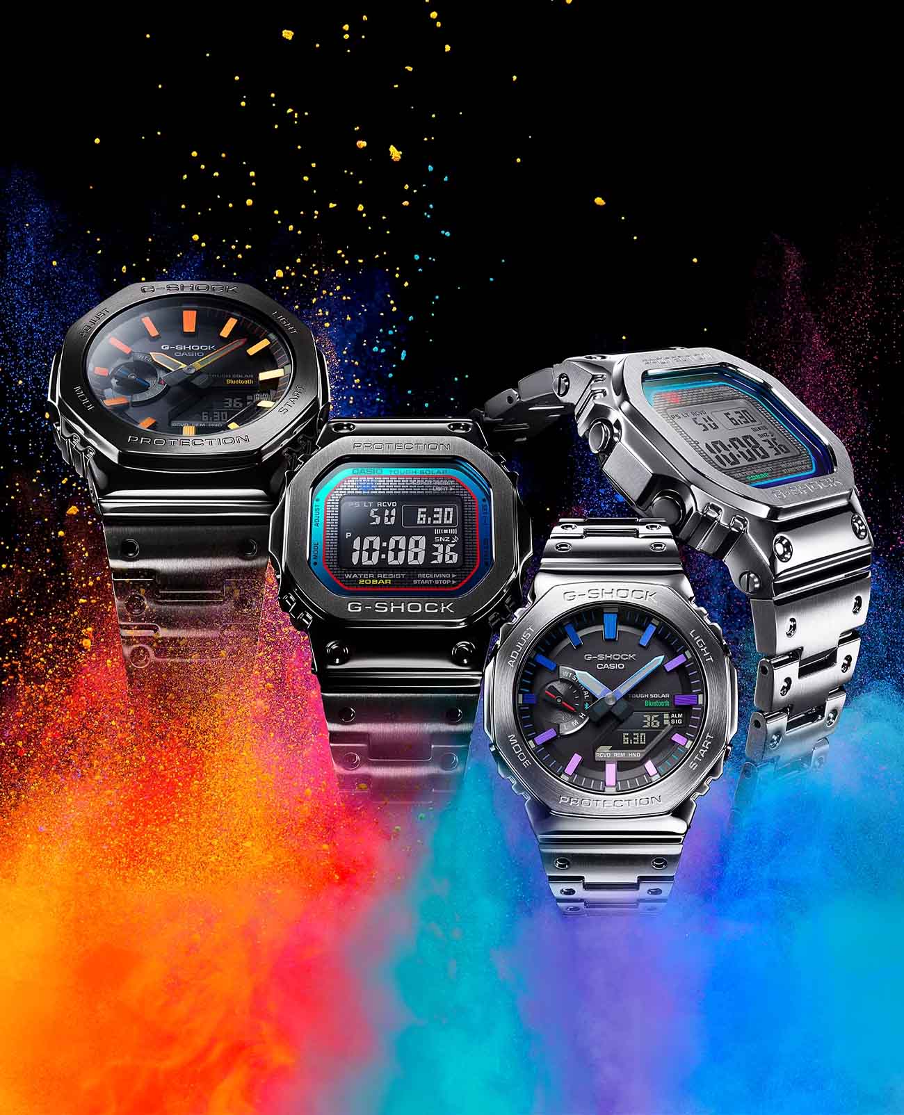 Японские мужские часы Casio G-Shock GMW-B5000BPC-1. Минеральное стеклоМинеральное стеклоМинеральное стекло представляет собой искусственно выращенный минерал кварца. Такое стекло отличается особой устойчивостью к повреждениям и царапинам. Уступает по некоторым качествам сапфировому стеклу. устойчивое к появлению царапин, обладающее высокой прозрачностью. Ударопрочный корпусУдаропрочный корпусМеханизм заключён в корпус, выполненный из современных материалов, устойчивых к ударам, механическим повреждениям и падению с высоты: инновационный пластик, карбон, нержавеющая сталь, титан. и ремешок выполнены из нержавеющей стали с IP-покрытиемIP-покрытиеМетод ионного напыления. Демонстрирует повышенную устойчивость к истиранию, окислению и химическим веществам. Под воздействием высокого давления и температуры около 1500°C молекулы металла надёжно соединяются с частицами корпуса часов., обеспечивающий максимально высокий уровень защиты часов от механических повреждений. Tough SolarTough SolarТехнология основана на подзарядке аккумулятора от источника солнечного света, специальная панель улавливает солнечные лучи и преобразует их в энергию для работы часов. Достаточно пары минут нахождения на солнце для функционирования часов в течении суток.. Часы оснащены технологией BluetoothBluetoothСовременная технология, позволяющая синхронизировать часы с телефоном и переносить данные. Часы с Bluetooth расширяют возможности вашего смартфона и делают его использование ещё более удобным., которая предлагает энергосберегающую возможность передачи данных нажатием кнопки. С помощью Bluetooth вы можете подключить часы к смартфону, не используя провод, и получить доступ к целому ряду полезных функций. Если часы подключены к смартфону, время устанавливается автоматически. Мировое времяМировое время Полезное часовое усложнение, отображающее время в основных городах и известных областях по всему миру, оно связано с часовыми поясами, удобно для путешественников и бизнесменов. в 29 различных часовых поясах. БудильникБудильникБуди́льник — часы, в заданный момент времени подающие звуковой, световой и/или в редких случаях другой сигнал., секундомерСекундомерСекундоме́р — прибор, способный измерять интервалы времени с точностью до долей секунды., таймерТаймерОтсчитывает секунды в обратном направлении в заданном интервале времени. и функция поиска телефона. После нажатия на кнопку, ваш потерянный телефон издаст звуковой сигнал. Класс водозащиты: 200 метров, позволит плавать, нырять и заниматься другими водными видами спорта. Стальной браслет с IP-покрытиемIP-покрытиеМетод ионного напыления. Демонстрирует повышенную устойчивость к истиранию, окислению и химическим веществам. Под воздействием высокого давления и температуры около 1500°C молекулы металла надёжно соединяются с частицами корпуса часов. на раскладной застёжкеРаскладная застёжкаТакой тип застёжки используется только на браслетах из металла. Она никогда не раскрывается полностью, происходит разделение на 2 и более частей. Раскладывающая застёжка снизит вероятность потери часов к минимуму..
