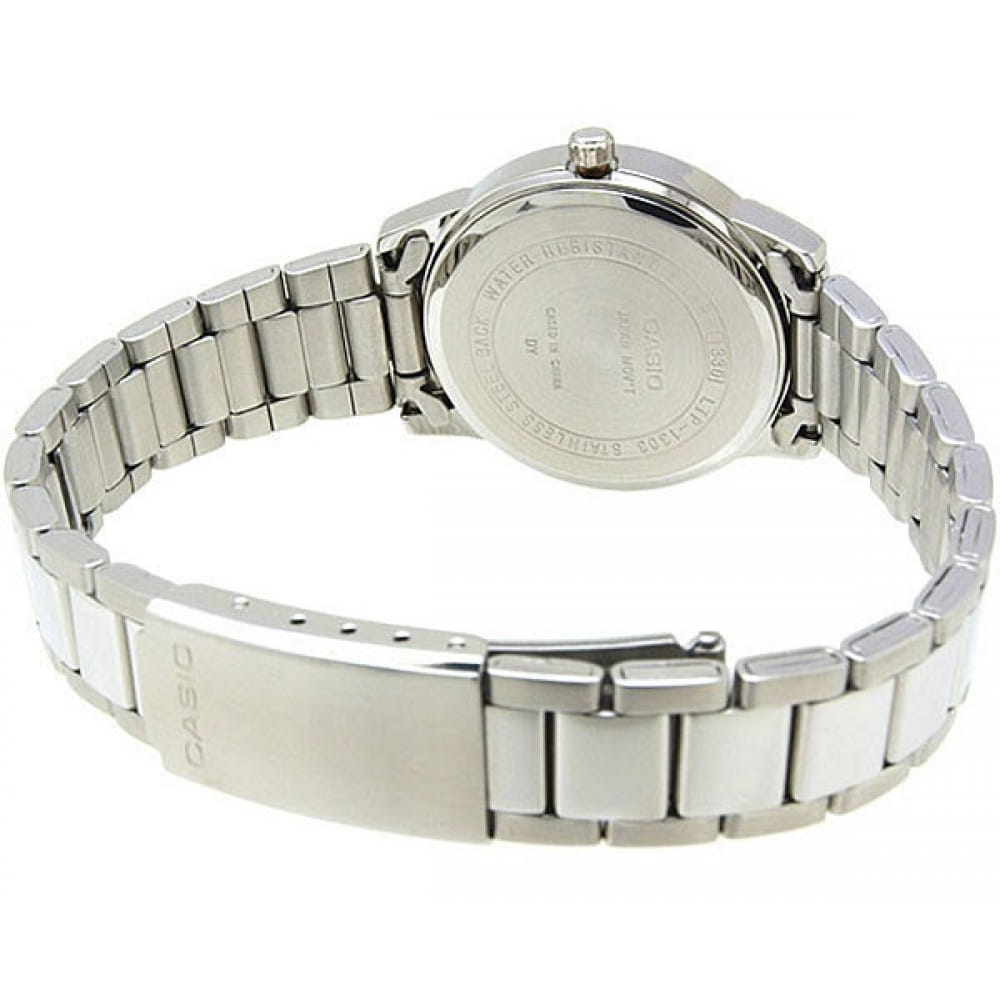 Японские женские часы LTP-1303D-7B с минеральным стекломМинеральное стеклоМинеральное стекло представляет собой искусственно выращенный минерал кварца. Такое стекло отличается особой устойчивостью к повреждениям и царапинам. Уступает по некоторым качествам сапфировому стеклу. изящно смотрятся на запястье, они привлекают классическим исполнением и правильной геометрией. Минималистичная модель станет отличным решением для любого случая: на работу, переговоры с деловыми партнёрами, прогулку с друзьями или праздничный вечер. Отсутствуют лишние детали, что позволяет часам быть актуальными на долгие годы. Корпус выполнен из нержавеющей стали 316L, отличающейся долговечностью и устойчивостью к повреждениям и царапинам. Модель комплектуется надёжным механизмом, точность хода которого составляет +/- 20 сек/мес. Стальной браслет на раскладной застёжкеРаскладная застёжкаТакой тип застёжки используется только на браслетах из металла. Она никогда не раскрывается полностью, происходит разделение на 2 и более частей. Раскладывающая застёжка снизит вероятность потери часов к минимуму.. Водозащита 50 метров, позволит защитить корпус от случайных брызг или капель дождя.Стрелки с люминесцентным покрытиемЛюминесцентное покрытиеПозволяет считывать показания времени в темноте. Производители наносят на стрелки, часовые индексы, безель или поверхность циферблата светонакопительный состав, дающий холодное свечение..