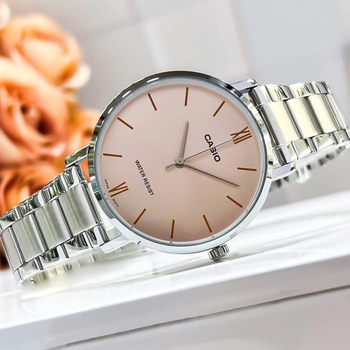 Японские женские часы  LTP-VT01D-4B с минеральным стекломМинеральное стеклоМинеральное стекло представляет собой искусственно выращенный минерал кварца. Такое стекло отличается особой устойчивостью к повреждениям и царапинам. Уступает по некоторым качествам сапфировому стеклу. изящно смотрятся на запястье, они привлекают классическим исполнением и правильной геометрией. Минималистичная модель станет отличным решением для любого случая: на работу, переговоры с деловыми партнёрами, прогулку с друзьями или праздничный вечер. Отсутствуют лишние детали, что позволяет часам быть актуальными на долгие годы. Корпус выполнен из нержавеющей стали. Модель комплектуется надёжным механизмом, точность хода которого составляет +/- 20 сек/мес. Стальной браслет на раскладной застёжкеРаскладная застёжкаТакой тип застёжки используется только на браслетах из металла. Она никогда не раскрывается полностью, происходит разделение на 2 и более частей. Раскладывающая застёжка снизит вероятность потери часов к минимуму.. Класс водозащиты: 30 метров, позволит защитить корпус от случайных брызг или капель дождя.