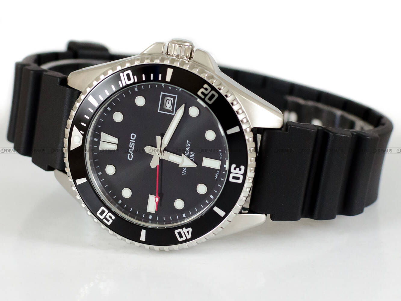 Японские мужские кварцевые часы с минеральным стекломМинеральное стеклоМинеральное стекло представляет собой искусственно выращенный минерал кварца. Такое стекло отличается особой устойчивостью к повреждениям и царапинам. Уступает по некоторым качествам сапфировому стеклу. Casio Collection MDV-10-1A1VEF, кварцевый механизм с высокой точностью. Корпус часов изготовлен из нержавеющей стали. Вращающийся безельБезельВнешний ободок, закрепляющий стекло. В спортивных часах так называется поворотное кольцо с делениями на циферблате, выполняет роль таймера – замеряет отрезки времени на шкале. Неподвижный безель – элемент декора. Однонаправленно вращающийся безель на дайверских часах позволяет фиксировать моменты погружения и выныривания на поверхность. из нержавеющей стали с IP-покрытиемIP-покрытиеМетод ионного напыления. Демонстрирует повышенную устойчивость к истиранию, окислению и химическим веществам. Под воздействием высокого давления и температуры около 1500°C молекулы металла надёжно соединяются с частицами корпуса часов.. Стрелки и метки с люминесцентным покрытиемЛюминесцентное покрытиеПозволяет считывать показания времени в темноте. Производители наносят на стрелки, часовые индексы, безель или поверхность циферблата светонакопительный состав, дающий холодное свечение.. Окошко даты находится в положении 3 часа. Класс водозащиты: 50 метров, позволит защитить корпус от случайных брызг или капель дождя. Ремешок с классической застежкой.