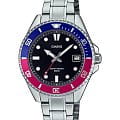 Японские мужские кварцевые часы с минеральным стекломМинеральное стеклоМинеральное стекло представляет собой искусственно выращенный минерал кварца. Такое стекло отличается особой устойчивостью к повреждениям и царапинам. Уступает по некоторым качествам сапфировому стеклу. Casio Collection MDV-10D-1A3, кварцевый механизм с высокой точностью. Корпус и браслет часов изготовлены из нержавеющей стали. Вращающийся безельБезельВнешний ободок, закрепляющий стекло. В спортивных часах так называется поворотное кольцо с делениями на циферблате, выполняет роль таймера – замеряет отрезки времени на шкале. Неподвижный безель – элемент декора. Однонаправленно вращающийся безель на дайверских часах позволяет фиксировать моменты погружения и выныривания на поверхность. из нержавеющей стали с IP-покрытиемIP-покрытиеМетод ионного напыления. Демонстрирует повышенную устойчивость к истиранию, окислению и химическим веществам. Под воздействием высокого давления и температуры около 1500°C молекулы металла надёжно соединяются с частицами корпуса часов.. Стрелки и метки с люминесцентным покрытиемЛюминесцентное покрытиеПозволяет считывать показания времени в темноте. Производители наносят на стрелки, часовые индексы, безель или поверхность циферблата светонакопительный состав, дающий холодное свечение.. Окошко даты находится в положении 3 часа. Класс водозащиты: 50 метров, позволит защитить корпус от случайных брызг или капель дождя.