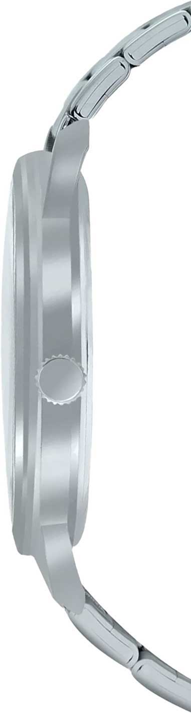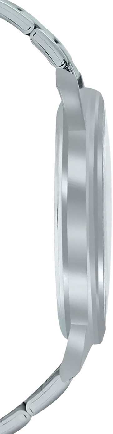 Аксессуар в классическом исполнении на стальном браслете. Компактный циферблат выполнен в минималистичном стиле. Контрастные стрелки и метки хорошо видны на его фоне. Высокоточный кварцевый механизм.