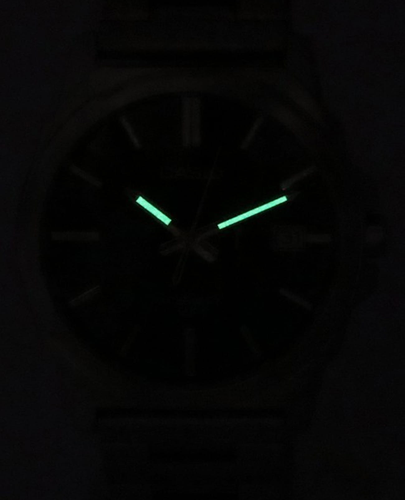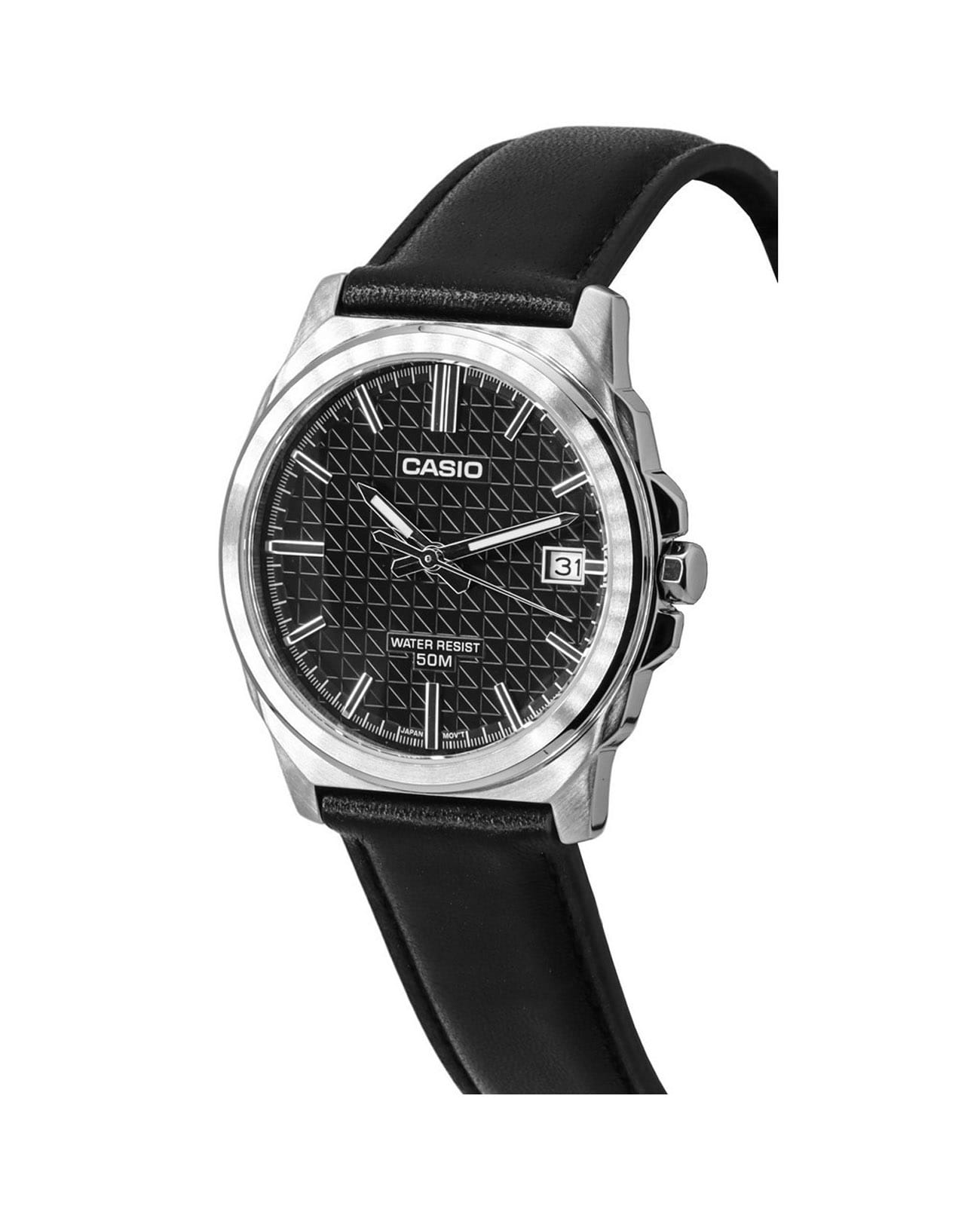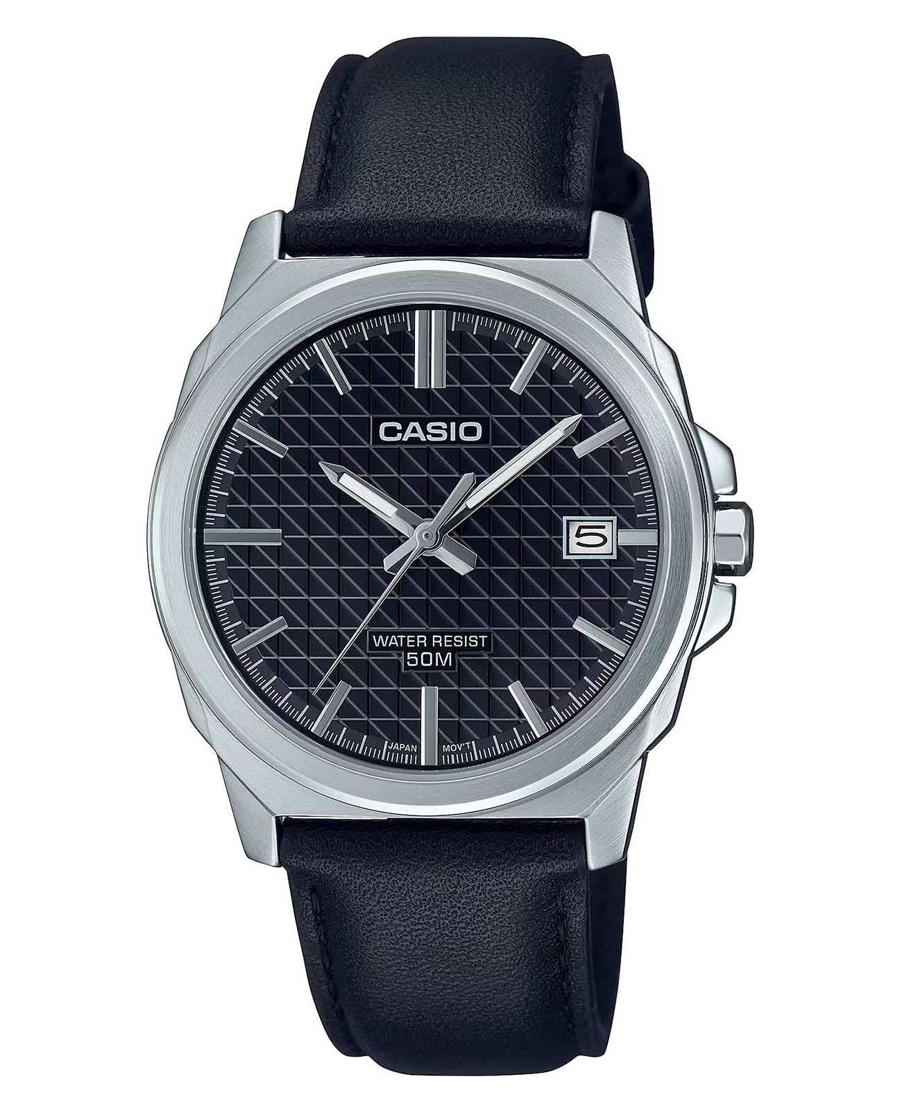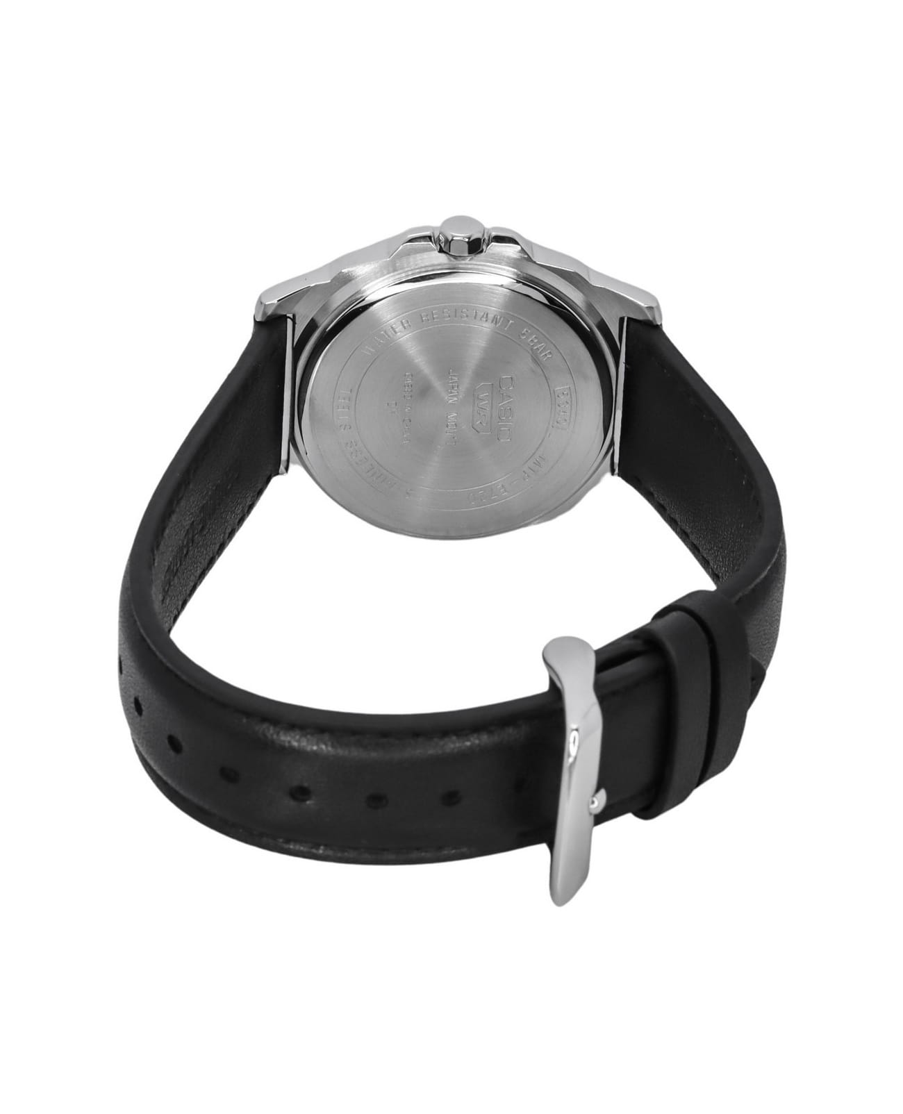 Японские мужские часы с минеральным стекломМинеральное стеклоМинеральное стекло представляет собой искусственно выращенный минерал кварца. Такое стекло отличается особой устойчивостью к повреждениям и царапинам. Уступает по некоторым качествам сапфировому стеклу. Casio Collection MTP-E720L-1A, кварцевый механизм с высокой точностью. Корпус часов изготовлен из стали. Стрелки с люминесцентным покрытиемЛюминесцентное покрытиеПозволяет считывать показания времени в темноте. Производители наносят на стрелки, часовые индексы, безель или поверхность циферблата светонакопительный состав, дающий холодное свечение.. Метки в виде штрихов. Окошко даты находится в положении 3 часа. Батарея рассчитана на 3 года. Заводная головка с защитой. Класс водозащиты: 50 метров, позволит защитить корпус от случайных брызг или капель дождя. Кожаный ремешок на стандартной застёжке.