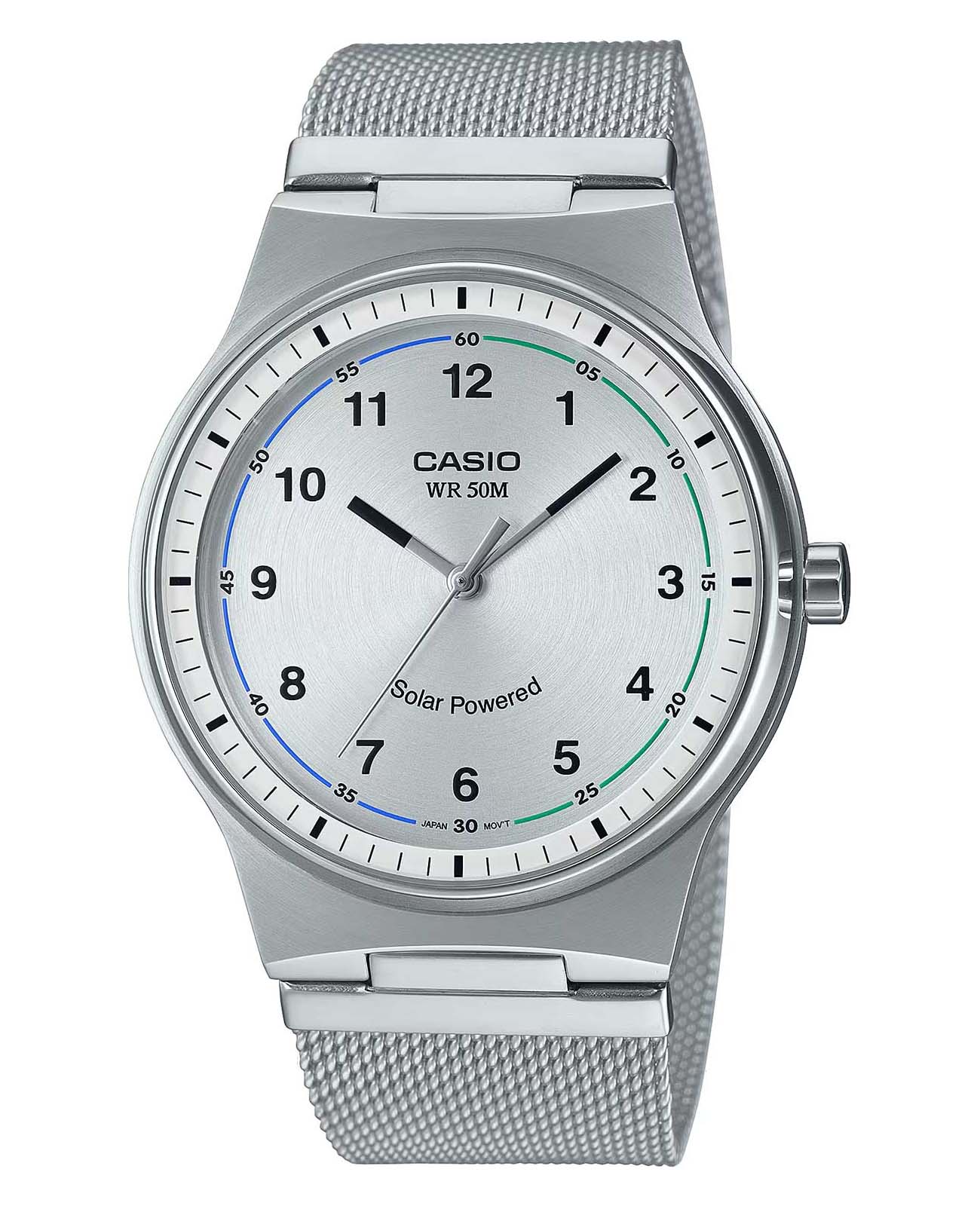 Японские мужские кварцевые часы с минеральным стекломМинеральное стеклоМинеральное стекло представляет собой искусственно выращенный минерал кварца. Такое стекло отличается особой устойчивостью к повреждениям и царапинам. Уступает по некоторым качествам сапфировому стеклу. Casio Collection MTP-RS105M-7B, кварцевый механизм с высокой точностью. Корпус часов изготовлен из нержавеющей стали. Питание от солнечной энергии. Время работы - 4 месяца. Циферблат с метками в виде штрихов выполнен по технологии Sunray (солнечные лучи). Циферблат с метками в виде штрихов. Класс водозащиты: 50 метров, позволит защитить корпус от случайных брызг или капель дождя. Стальной браслет миланского плетения на раскладном замкеРаскладной замокДанный вариант застежки используется только на часах с металлическим браслетом. Отличительная особенность такого крепления в том, что длина браслета становится универсальной и вы можете самостоятельно отрегулировать нужный вам размер – застежка просто двигается по браслету часов..