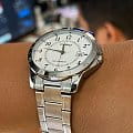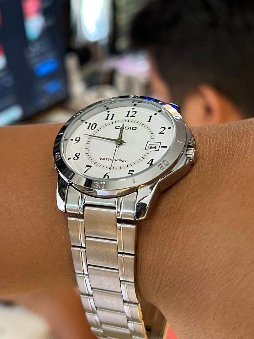 Японские мужские кварцевые часы с минеральным стекломМинеральное стеклоМинеральное стекло представляет собой искусственно выращенный минерал кварца. Такое стекло отличается особой устойчивостью к повреждениям и царапинам. Уступает по некоторым качествам сапфировому стеклу. Casio Collection MTP-V004D-7B, кварцевый механизм с высокой точностью. Класс водозащиты: 30 метров, позволит защитить корпус от случайных брызг или капель дождя. Корпус часов изготовлен из стали. Стальной браслет на раскладной застёжкеРаскладная застёжкаТакой тип застёжки используется только на браслетах из металла. Она никогда не раскрывается полностью, происходит разделение на 2 и более частей. Раскладывающая застёжка снизит вероятность потери часов к минимуму.. Окошко даты находится в положении 3 часа.