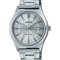 Японские мужские кварцевые часы с минеральным стекломМинеральное стеклоМинеральное стекло представляет собой искусственно выращенный минерал кварца. Такое стекло отличается особой устойчивостью к повреждениям и царапинам. Уступает по некоторым качествам сапфировому стеклу. Casio Collection MTP-V006D-7C, кварцевый механизм с высокой точностью. Корпус и браслет часов изготовлен из нержавеющей стали. Циферблат с метками в виде штрихов. Окошко даты находится в положении 3 часа. Класс водозащиты: 30 метров, позволит защитить корпус от случайных брызг или капель дождя. Стальной браслет на раскладной застёжкеРаскладная застёжкаТакой тип застёжки используется только на браслетах из металла. Она никогда не раскрывается полностью, происходит разделение на 2 и более частей. Раскладывающая застёжка снизит вероятность потери часов к минимуму..