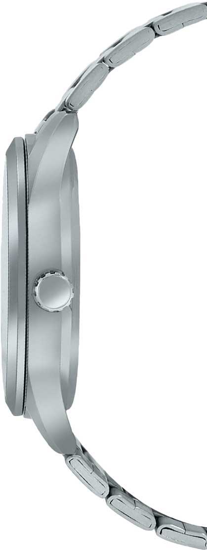 Аксессуар в строгом черном исполнении никогда не утратит актуальности, он будет прекрасным дополнением к классическому костюму, спортивной футболке, модных джинсах. Компактный циферблат выполнен в минималистичном стиле, с метками в виде штрихов. Контрастные стрелки и метки с люминесцентным покрытиемЛюминесцентное покрытиеПозволяет считывать показания времени в темноте. Производители наносят на стрелки, часовые индексы, безель или поверхность циферблата светонакопительный состав, дающий холодное свечение. хорошо видны на его фоне. Браслет с раскладной застёжкойРаскладная застёжкаТакой тип застёжки используется только на браслетах из металла. Она никогда не раскрывается полностью, происходит разделение на 2 и более частей. Раскладывающая застёжка снизит вероятность потери часов к минимуму. Высокоточный кварцевый механизм.