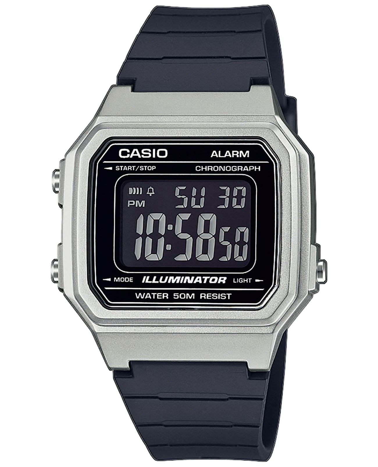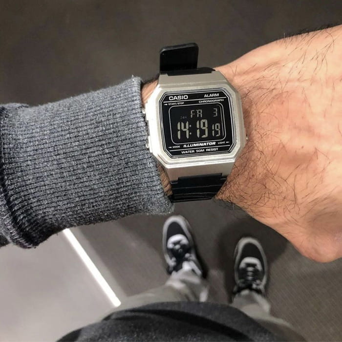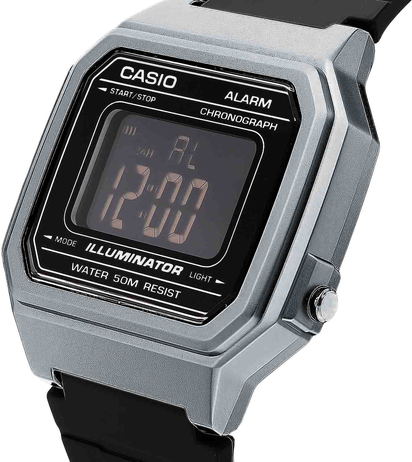 Японские мужские часы c хронографомХронографФункция позволяет измерять отрезки времени с особой точностью: часы, минуты, секунды. Верным признаком хронографа является наличие на циферблате 3 дополнительных окошек-счётчиков. Casio Standard Digital W-217HM-7B, кварцевый механизм с высокой точностью. Класс водозащиты: 50 метров, позволит защитить корпус от случайных брызг или капель дождя. Корпус часов изготовлен из пластика. Пластиковый ремешок на стандартной застёжке. Сплит-хронографХронографФункция позволяет измерять отрезки времени с особой точностью: часы, минуты, секунды. Верным признаком хронографа является наличие на циферблате 3 дополнительных окошек-счётчиков.. 12-ти и 24-х часовой формат времени. Светодиодная подсветкаСветодиодная подсветкаСветодиодная или LED-подсветка обеспечивает появление яркого холодного свечения за счёт LED-элементов - маленьких лампочек. Они потребляют минимальное количество энергии, чаще всего можно встретить 1 светодиод, в нижней части циферблата. освещает весь циферблат.
