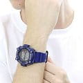 Спортивные японские мужские часы с хронографом Casio Collection WS-1300H-2A, кварцевый механизм с высокой точностью. Класс водозащиты: 100 метров, позволит плавать, нырять и заниматься другими водными видами спорта. Корпус часов изготовлен из пластика, синего цвета.