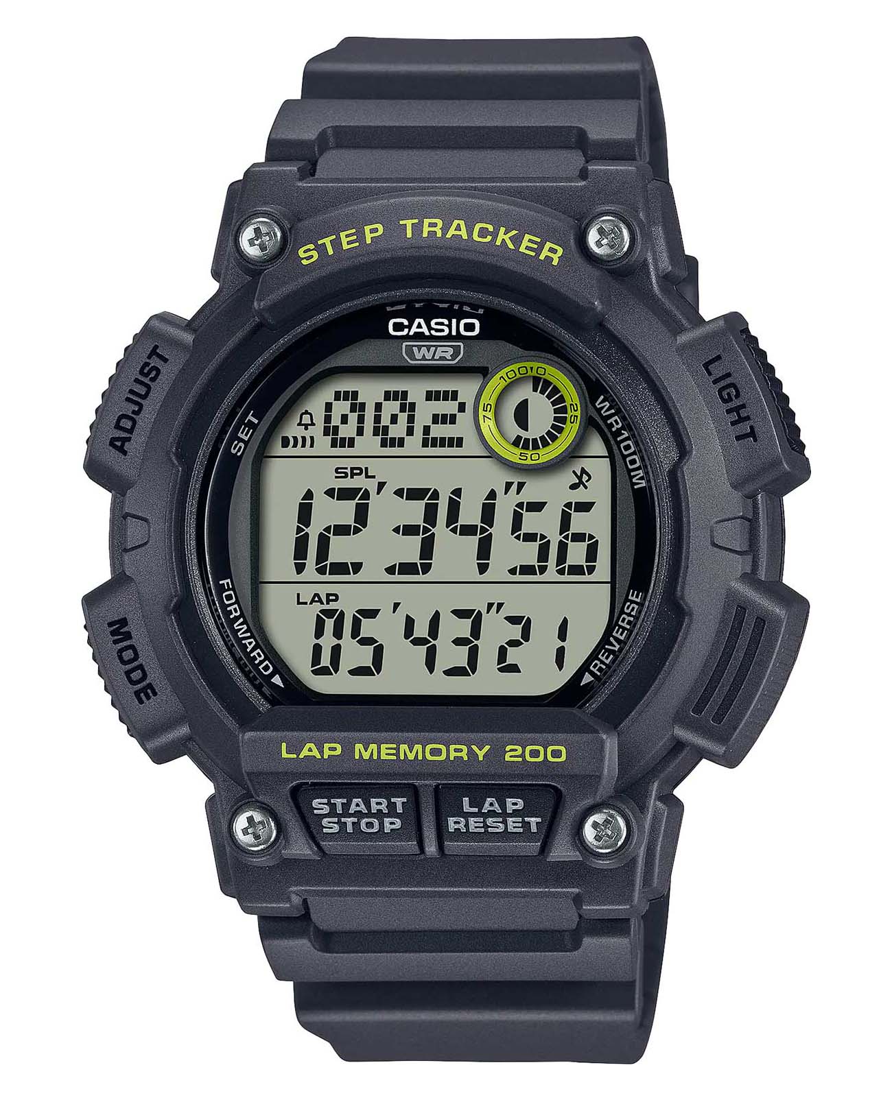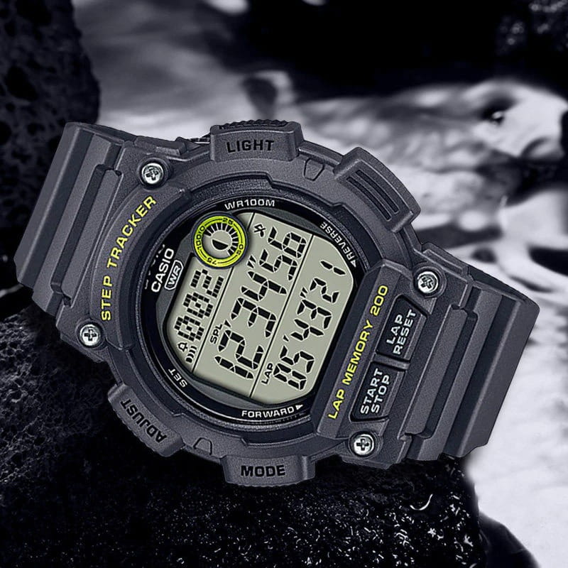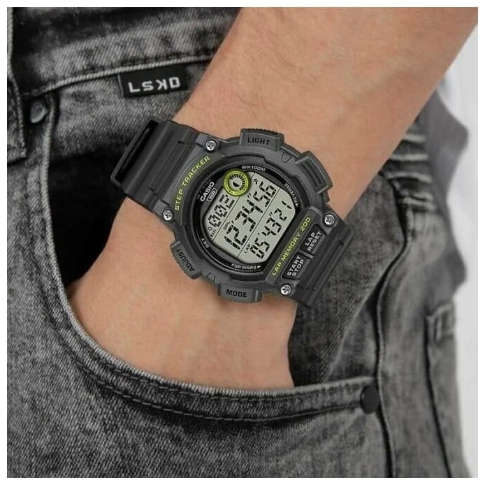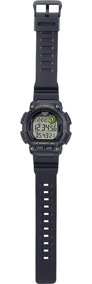 Японские мужские наручные часы Casio WS-2100H-8A c кварцевым механизмом высокой точности. Корпус часов изготовлен из полимерного пластика черного цвета. Функции: Сплит-хронографСплит-хронографИспользуется для измерения продолжительности нескольких временных отрезков, начинающихся одновременно, а заканчивающихся в разное время., второй часовой пояс, ШагомерШагомерШагоме́р или педо́метр — измерительный прибор для подсчёта количества сделанных шагов (или пар шагов) при ходьбе или беге., Мировое времяМировое время Полезное часовое усложнение, отображающее время в основных городах и известных областях по всему миру, оно связано с часовыми поясами, удобно для путешественников и бизнесменов. , светодиодная подсветкаСветодиодная подсветкаСветодиодная или LED-подсветка обеспечивает появление яркого холодного свечения за счёт LED-элементов - маленьких лампочек. Они потребляют минимальное количество энергии, чаще всего можно встретить 1 светодиод, в нижней части циферблата., секундомерСекундомерСекундоме́р — прибор, способный измерять интервалы времени с точностью до долей секунды., таймерТаймерОтсчитывает секунды в обратном направлении в заданном интервале времени., будильникБудильникБуди́льник — часы, в заданный момент времени подающие звуковой, световой и/или в редких случаях другой сигнал., автоматический календарь, 12/24 отображение времени. Органическое стекло, корпус и ремешок из полимерного пластика, водонепроницаемость (10 бар). Габариты (Ш x В x Г) 48,1 х 49,9 х 14,6. Вес 47 г.