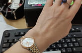 Перламутровый циферблат. Кварцевый механизм с абсолютной точностью и сертификатом COSC. Водозащита до 100м.