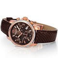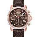 Стальной безельБезельВнешний ободок, закрепляющий стекло. В спортивных часах так называется поворотное кольцо с делениями на циферблате, выполняет роль таймера – замеряет отрезки времени на шкале. Неподвижный безель – элемент декора. Однонаправленно вращающийся безель на дайверских часах позволяет фиксировать моменты погружения и выныривания на поверхность. декорирован 60 бриллиантами оттенка Top Wesselton. Специалисты отмечают высокую точность хронографаХронографФункция позволяет измерять отрезки времени с особой точностью: часы, минуты, секунды. Верным признаком хронографа является наличие на циферблате 3 дополнительных окошек-счётчиков. благодаря швейцарскому кварцевому механизму ETA 251.471. Ремешок выполнен из натуральной кожи с имитацией рисунка змеиной кожи, стрелки имеют люминесцентную подсветкуЛюминесцентное покрытиеПозволяет считывать показания времени в темноте. Производители наносят на стрелки, часовые индексы, безель или поверхность циферблата светонакопительный состав, дающий холодное свечение..