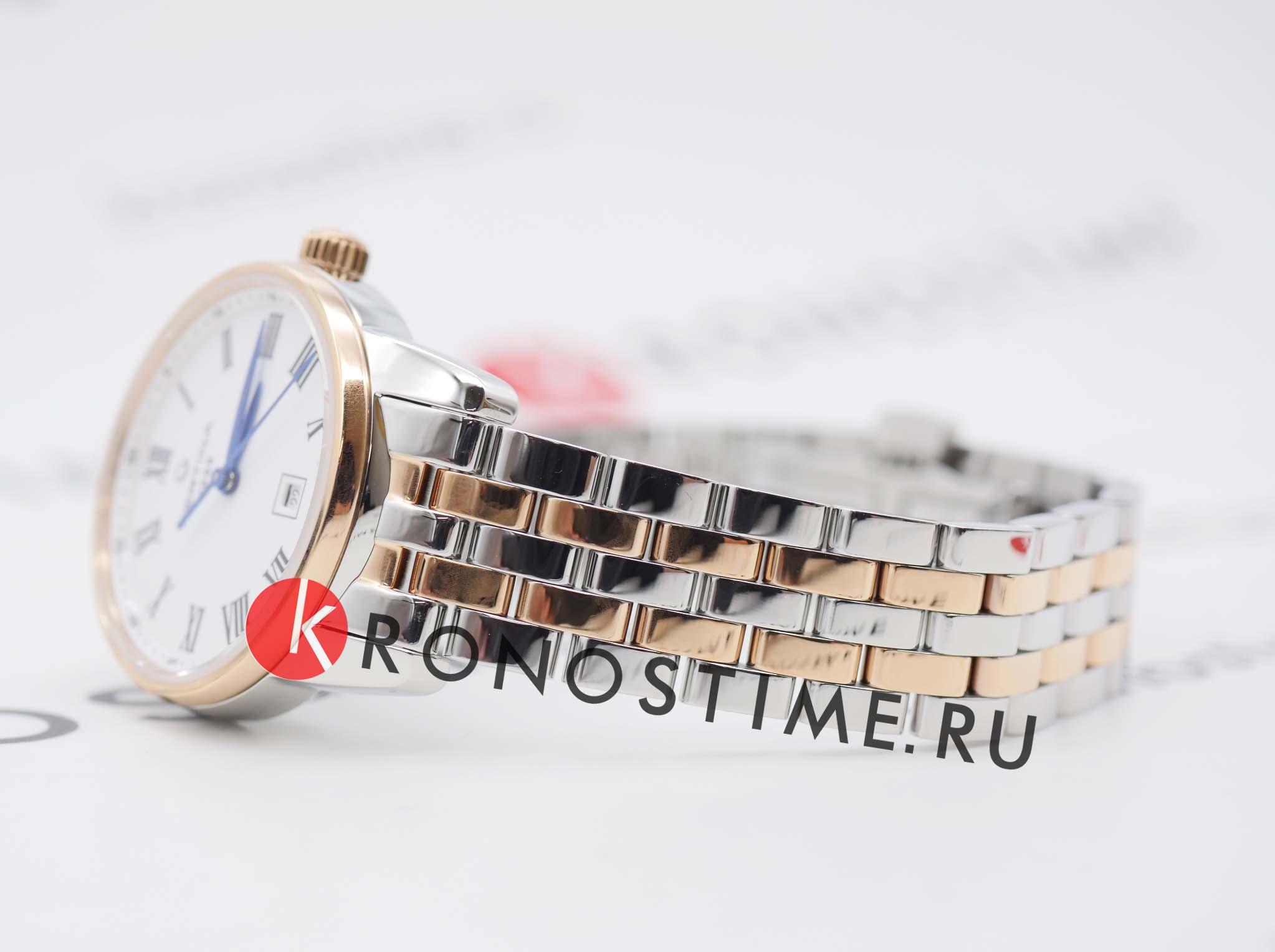 Элегантный аксессуар обладает вневременным дизайном, белый циферблат дополнен римскими цифрами с винтажным оттенком. Часы с автоматической системой завода для своей работы используют энергию от движений руки носительницы, позволяя забыть о необходимости регулярного завода. Швейцарский механизм ETA 2671 с 38-часовым запасом хода. Скелетонизированная задняя крышка. Сапфировое стеклоСапфировое стеклоПрочный и надёжный материал из кристалла сапфира синтетического происхождения, характеризующийся особой твёрдостью и устойчивостью к царапинам и повреждениям. с двухсторонней обработкой «антиблик». Концепция Double SecurityDS ConceptDouble Security Concept, обозначает двойную надёжность и безупречную точность часов Certina. Двойная система защиты подразумевает обеспечение максимальной устойчивости к ударам и высоких показателей водонепроницаемости.. Корпус и браслет из нержавеющей стали 316L с PVD-покрытиемPVDУльтратонкое покрытие наносится в технике вакуумного напыления, сочетает в себе нитрид титана особой прочности со слоем золота или оксида хрома. Несёт в себе декоративную или защитную функцию. «розовое золото». Водозащита 100 метров. Застёжка «бабочка» с кнопкамиЗастёжка "бабочка"Такой вид застёжки дополняется предохранителями, помогающими избежать случайного раскрытия браслета. Обладают изящным исполнением. . Отображение числа. Диаметр корпуса: 29 мм.