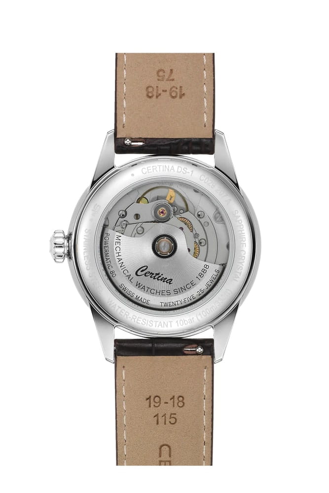 Швейцарские механические часы Certina DS-1 C029.207.16.091.00. Выпуклое сапфировое стеклоСапфировое стеклоПрочный и надёжный материал из кристалла сапфира синтетического происхождения, характеризующийся особой твёрдостью и устойчивостью к царапинам и повреждениям. с антибликовым покрытием. Класс водозащиты: 100 метров, позволит плавать, нырять и заниматься другими водными видами спорта. Корпус часов изготовлен из нержавеющей стали 316L. Кожаный ремешок на застёжке-бабочке с кнопкамиЗастёжка "бабочка"Такой вид застёжки дополняется предохранителями, помогающими избежать случайного раскрытия браслета. Обладают изящным исполнением. .