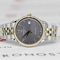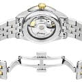 Certina DS-1 Powermatic 80 (C029.207.22.081.00) — элегантные швейцарские часы, сочетающие классический дизайн и современные технологии. Корпус выполнен из нержавеющей стали 316L диаметром 38 мм с PVDPVDУльтратонкое покрытие наносится в технике вакуумного напыления, сочетает в себе нитрид титана особой прочности со слоем золота или оксида хрома. Несёт в себе декоративную или защитную функцию.-покрытием золотого цвета на безелеБезельВнешний ободок, закрепляющий стекло. В спортивных часах так называется поворотное кольцо с делениями на циферблате, выполняет роль таймера – замеряет отрезки времени на шкале. Неподвижный безель – элемент декора. Однонаправленно вращающийся безель на дайверских часах позволяет фиксировать моменты погружения и выныривания на поверхность., придающим модели изысканный двухцветный вид. Сапфировое стеклоСапфировое стеклоПрочный и надёжный материал из кристалла сапфира синтетического происхождения, характеризующийся особой твёрдостью и устойчивостью к царапинам и повреждениям. с антибликовым покрытиемАнтибликовое покрытиеСлой оксида металла в 0,13-0,3 микрон, благодаря которому стекло часов не бликует и не отражает свет. Антибликовое покрытие уменьшает отражение света в 10 раз, обеспечивая отличную читаемость показателей циферблата. защищает циферблат от царапин и гарантирует превосходную читаемость. Механизм Powermatic 80Powermatic 80Эксклюзивный калибр от швейцарской компании ETA с увеличенным запасом хода до 80 часов за счёт удлинённой заводной пружины. Характеризуется улучшенной системой спуска со сниженным трением. с 80-часовым запасом хода и спиралью баланса Nivachron™Nivachron™Специально разработанный инновационный сплав Nivachron™ повышает устойчивость часов к воздействию магнитных полей. обеспечивает высокую точность и устойчивость к магнитным полям. Серый циферблат с солнечным узором оснащён стрелками и метками с люминесцентным покрытиемЛюминесцентное покрытиеПозволяет считывать показания времени в темноте. Производители наносят на стрелки, часовые индексы, безель или поверхность циферблата светонакопительный состав, дающий холодное свечение., обеспечивающим удобное считывание времени в условиях низкой освещённости. Браслет из нержавеющей стали 316L с PVDPVDУльтратонкое покрытие наносится в технике вакуумного напыления, сочетает в себе нитрид титана особой прочности со слоем золота или оксида хрома. Несёт в себе декоративную или защитную функцию.-покрытием золотого цвета на застёжке-бабочке с кнопкамиЗастёжка "бабочка"Такой вид застёжки дополняется предохранителями, помогающими избежать случайного раскрытия браслета. Обладают изящным исполнением. с двумя кнопками для надёжной фиксации. Водонепроницаемость 100 метров делает модель подходящей для плавания и других водных активностей.