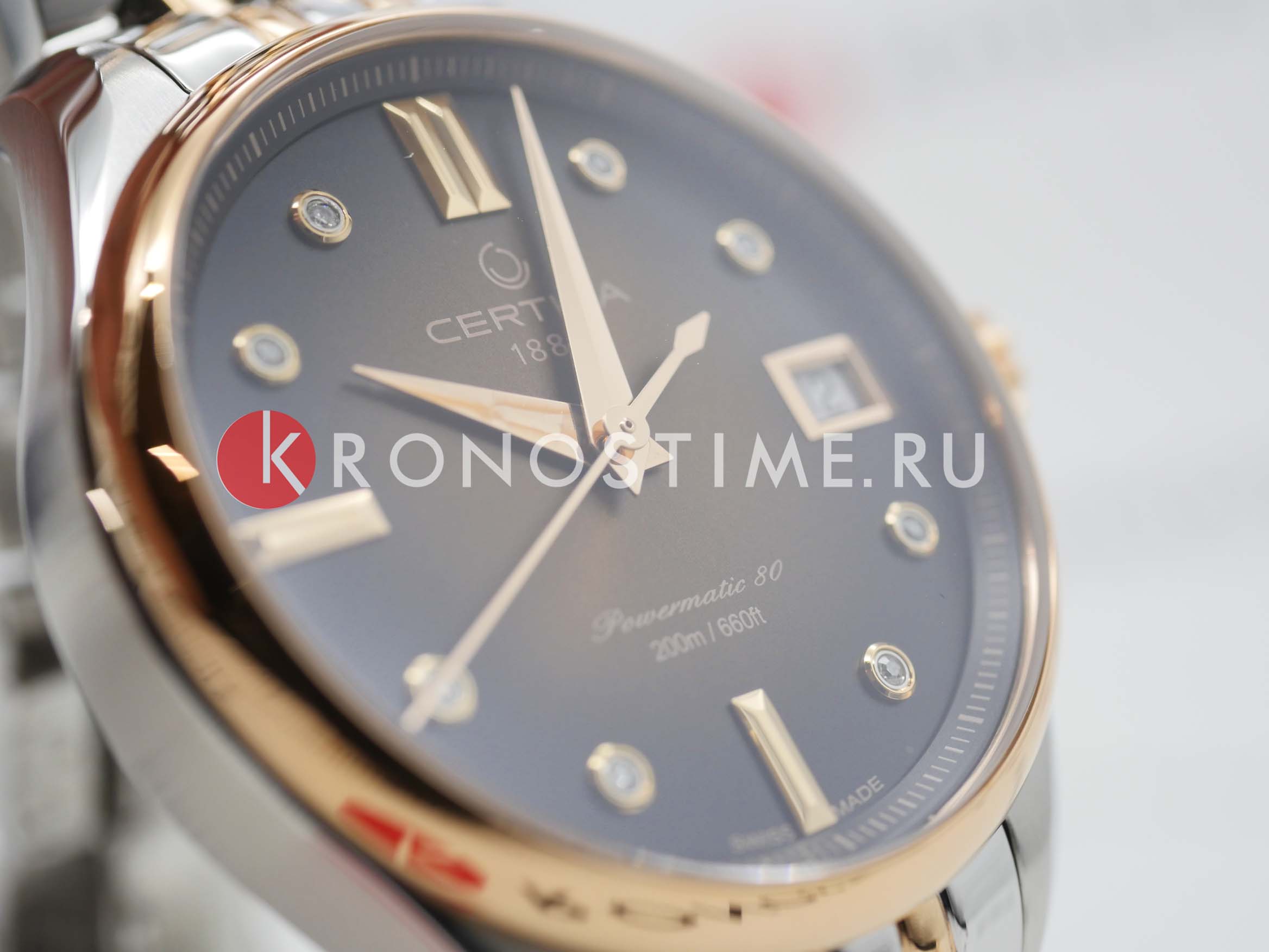 Аксессуар обладает изящным силуэтом, отражающим классический стиль и элегантность. Циферблат украшен восемью роскошными бриллиантами оттенка Top Wesselton. Калибр Powermatic с автоподзаводом не только имеет 80-часовой запас хода, но и оснащен балансирной пружиной Nivachron ™, гарантирующей надежную точность, не подверженную влиянию магнитных полей. Сверкающие бриллианты и изысканные детали создают неподвластную времени элегантность.. Концепция DS ConceptDS ConceptDouble Security Concept, обозначает двойную надёжность и безупречную точность часов Certina. Двойная система защиты подразумевает обеспечение максимальной устойчивости к ударам и высоких показателей водонепроницаемости. гарантирует повышенную ударопрочность часов и сохранение водонепроницаемости до 20 бар. Одностороннее антибликовое покрытие сапфирового стекла. Корпус и браслет из хирургической стали 316L.. Диаметр корпуса: 34,5 мм.