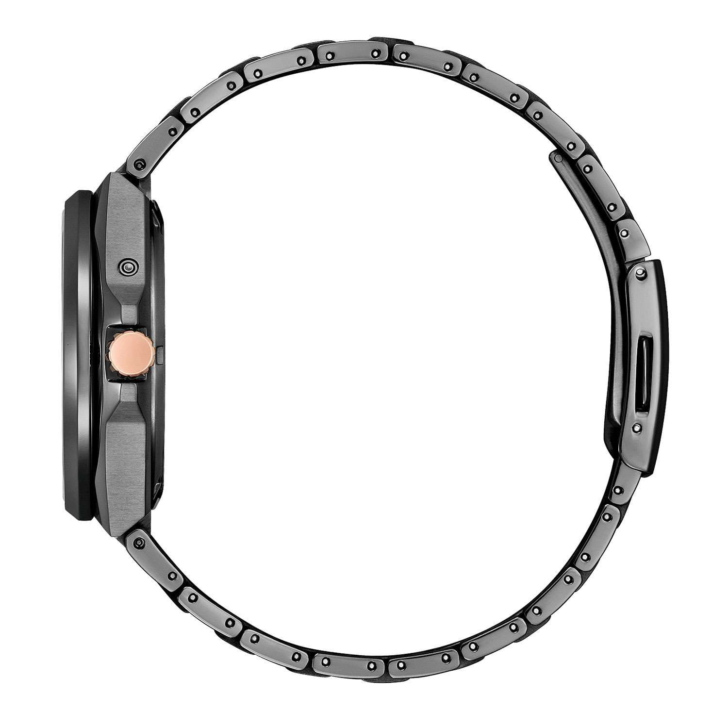 Японские часы Citizen BU0065-64E сочетают в себе современные технологии и элегантный дизайн. Модель оснащена надежным кварцевым механизмом с инновационной системой Eco-Drive, которая работает на солнечной энергии и не требует замены батарейки, обеспечивая запас хода до 180 дней. Дополнительные функции включают индикацию даты, дня недели, месяца, а также фаз Луны. Специальный индикатор заряда и система предотвращения перезарядки гарантируют стабильную работу часов. Корпус выполнен из легкого и прочного титана с черным DLC-покрытиеDLC-покрытиеDiamond like carbon - одно из лучших видов покрытия, представляющее собой углерод с алмазными свойствами. На поверхность материала наносятся распавшиеся молекулы углерода, превращающиеся в плёнку из алмазоподобных связей, которая перенимает твёрдость алмаза. диаметром 42 мм и толщиной 12,2 мм, а устойчивое к царапинам сапфировое стеклоСапфировое стеклоПрочный и надёжный материал из кристалла сапфира синтетического происхождения, характеризующийся особой твёрдостью и устойчивостью к царапинам и повреждениям. надежно защищает циферблат. Водостойкость уровня WR 100 позволяет использовать часы при плавании и в повседневной жизни. Титановый браслет с черным DLC-покрытиемDLC-покрытиеDiamond like carbon - одно из лучших видов покрытия, представляющее собой углерод с алмазными свойствами. На поверхность материала наносятся распавшиеся молекулы углерода, превращающиеся в плёнку из алмазоподобных связей, которая перенимает твёрдость алмаза. и раскладной застёжкойРаскладная застёжкаТакой тип застёжки используется только на браслетах из металла. Она никогда не раскрывается полностью, происходит разделение на 2 и более частей. Раскладывающая застёжка снизит вероятность потери часов к минимуму. гармонично дополняет корпус, подчеркивая премиальный стиль модели. Дополнительные функции включают индикацию низкого заряда EOLEOLПредставляет собой систему, уведомляющую владельца часов о необходимости замены элемента питания. За 2 недели до полного разряда батарейки секундная стрелка перестаёт ходить чётко и начинает перепрыгивать на 3-4 деления. и предотвращение перезарядки. Стрелки с люминесцентным покрытиемЛюминесцентное покрытиеПозволяет считывать показания времени в темноте. Производители наносят на стрелки, часовые индексы, безель или поверхность циферблата светонакопительный состав, дающий холодное свечение. позволяют легко считывать время даже в условиях недостаточного освещения.