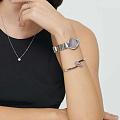 Часы Citizen EM0927-87Y произведены в Японии и оснащены точным кварцевым механизмом калибра Citizen E031 с инновационной системой Eco-Drive, работающей от солнечной энергии и обеспечивающей до 180 дней автономной работы без замены батареек. Корпус и браслет изготовлены из прочной нержавеющей стали, что придает изделию элегантный и современный вид, а браслет оснащен удобной застежкой «бабочка»Застёжка "бабочка"Такой вид застёжки дополняется предохранителями, помогающими избежать случайного раскрытия браслета. Обладают изящным исполнением. . Перламутровый циферблат украшен изящными метками в виде точек и римских цифр, защищён надежным сапфировым стекломСапфировое стеклоПрочный и надёжный материал из кристалла сапфира синтетического происхождения, характеризующийся особой твёрдостью и устойчивостью к царапинам и повреждениям., устойчивым к царапинам. Водозащита 50WR позволяет не беспокоиться о контакте с водой в повседневной жизни. Компактные размеры корпуса (диаметр 28 мм, толщина 8 мм) и легкий вес (68 г) обеспечивают комфортное ношение в течение всего дня. Эта модель станет не только точным инструментом для измерения времени, но и стильным завершением вашего образа.