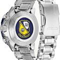 Citizen Promaster JY8078-52L часы-хронографХронографФункция позволяет измерять отрезки времени с особой точностью: часы, минуты, секунды. Верным признаком хронографа является наличие на циферблате 3 дополнительных окошек-счётчиков. с секундомеромСекундомерСекундоме́р — прибор, способный измерять интервалы времени с точностью до долей секунды. спортивного дизайна с высоким уровнем водозащиты. Корпус из нержавеющей стали диаметром 45,4 мм идеально сбалансирован. Сапфировое стеклоСапфировое стеклоПрочный и надёжный материал из кристалла сапфира синтетического происхождения, характеризующийся особой твёрдостью и устойчивостью к царапинам и повреждениям. с антибликовым покрытием обеспечивает отличную защиту циферблата от царапин. Часы работают на основе кварцевого механизма, питание от солнечной энергии. Стальной браслет на раскладной застёжкеРаскладная застёжкаТакой тип застёжки используется только на браслетах из металла. Она никогда не раскрывается полностью, происходит разделение на 2 и более частей. Раскладывающая застёжка снизит вероятность потери часов к минимуму. идеально дополняют дизайн часов, обеспечивая комфортное ношение. Стрелки и метки на циферблате имеют люминесцентное покрытиеЛюминесцентное покрытиеПозволяет считывать показания времени в темноте. Производители наносят на стрелки, часовые индексы, безель или поверхность циферблата светонакопительный состав, дающий холодное свечение. позволяющее легко определять время даже в темноте. Поворотный безельБезельВнешний ободок, закрепляющий стекло. В спортивных часах так называется поворотное кольцо с делениями на циферблате, выполняет роль таймера – замеряет отрезки времени на шкале. Неподвижный безель – элемент декора. Однонаправленно вращающийся безель на дайверских часах позволяет фиксировать моменты погружения и выныривания на поверхность. с IP-покрытиемIP-покрытиеМетод ионного напыления. Демонстрирует повышенную устойчивость к истиранию, окислению и химическим веществам. Под воздействием высокого давления и температуры около 1500°C молекулы металла надёжно соединяются с частицами корпуса часов.. Автоматический прием сигналов от радиовышек, расположенных в различных точках земного шара, которые передают временные сигналы от определенных атомных часов. Коррекция текущего времени радиосигналом на территории почти всей Европы, США, Японии и Китая. Функция индикации заряда (EOL) и предотвращения перезарядки. Мировое времяМировое время Полезное часовое усложнение, отображающее время в основных городах и известных областях по всему миру, оно связано с часовыми поясами, удобно для путешественников и бизнесменов. - 43 города (29 часовых поясов), переход на зимнее и летнее время. Всемирное координированное время UTCUTCВсемирное кординационное время, не имеющее привязки к географическому положению Гринвича, основывается на атомном отсчёте времени. Регулировка времени осуществляется более точно, чем устаревшее GMT.