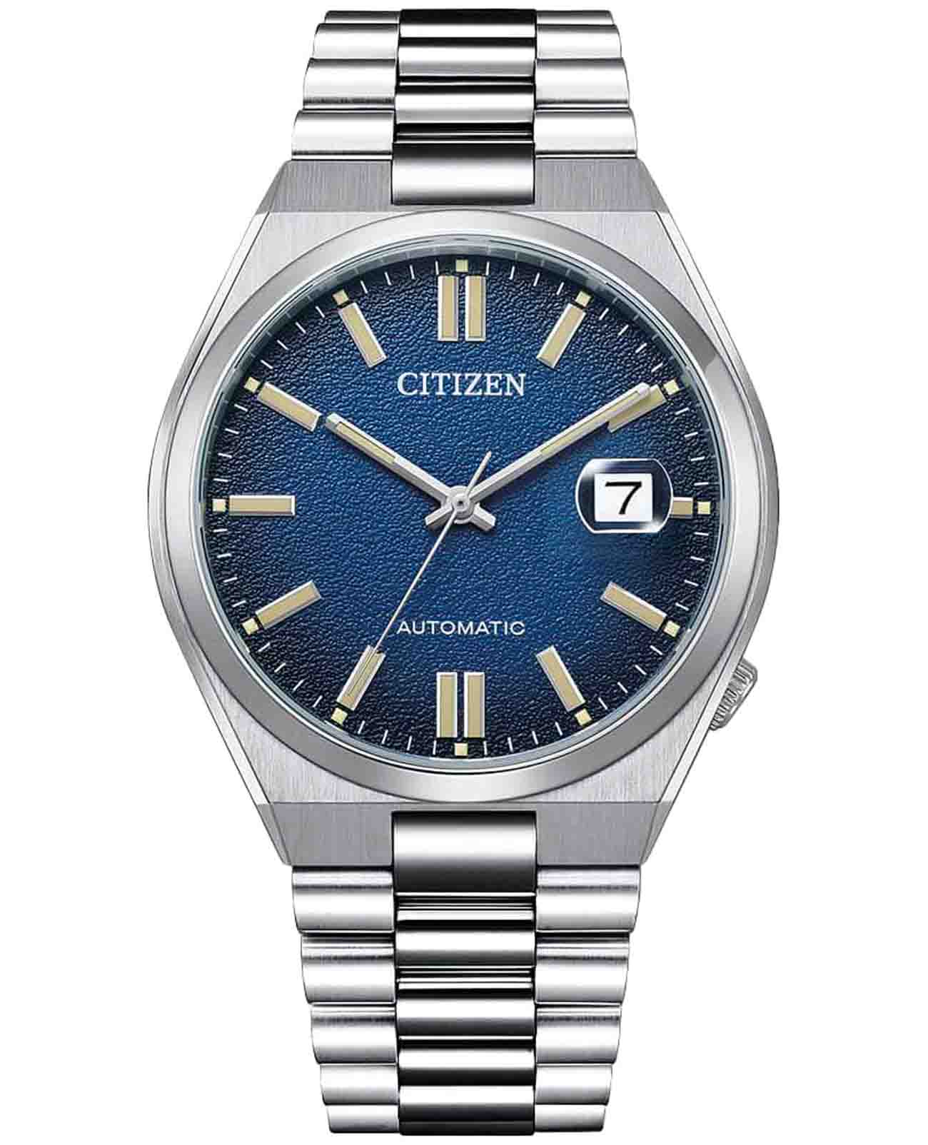 Мужские часы Citizen Tsuyosa NJ0151-88L - идеальное сочетание классического и современного дизайна. Корпус из нержавеющей стали диаметром 40 мм идеально сбалансирован. Сапфировое стеклоСапфировое стеклоПрочный и надёжный материал из кристалла сапфира синтетического происхождения, характеризующийся особой твёрдостью и устойчивостью к царапинам и повреждениям. обеспечивает отличную защиту циферблата от царапин. Механические часы с автоподзаводом. Стальной браслет на раскладной застёжкеРаскладная застёжкаТакой тип застёжки используется только на браслетах из металла. Она никогда не раскрывается полностью, происходит разделение на 2 и более частей. Раскладывающая застёжка снизит вероятность потери часов к минимуму. идеально дополняют дизайн часов, обеспечивая комфортное ношение. Метки в виде штрихов. Окошко даты в положении 3 часа. Стрелки и метки с люминесцентным покрытиемЛюминесцентное покрытиеПозволяет считывать показания времени в темноте. Производители наносят на стрелки, часовые индексы, безель или поверхность циферблата светонакопительный состав, дающий холодное свечение.. В механизме 21 камень, частота 21600 полуколебаний в час. Запас хода 42 часа. Рифленая заводная головка находится в положении 4 часа. Завинчивающаяся прозрачная задняя крышка. Часы обладают водонепроницаемостью до 50WR, что делает их идеальными для повседневной носки.