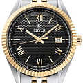 Cover Alston CO216.05 – элегантные мужские часы, сочетающие современный стиль и классическую элегантность. Корпус диаметром 40 мм выполнен из нержавеющей стали, что обеспечивает прочность и долговечность. Циферблат черного цвета с тонким треугольным узором придаёт часам изысканный вид, а его поверхность защищена  минеральным стекломМинеральное стеклоМинеральное стекло представляет собой искусственно выращенный минерал кварца. Такое стекло отличается особой устойчивостью к повреждениям и царапинам. Уступает по некоторым качествам сапфировому стеклу.. Часы оснащены швейцарским кварцевым механизмом, обеспечивающим точный ход и надёжность. Функциональность дополняется окошком даты, расположенным на позиции «3 часа». Браслет и безельБезельВнешний ободок, закрепляющий стекло. В спортивных часах так называется поворотное кольцо с делениями на циферблате, выполняет роль таймера – замеряет отрезки времени на шкале. Неподвижный безель – элемент декора. Однонаправленно вращающийся безель на дайверских часах позволяет фиксировать моменты погружения и выныривания на поверхность. изготовлены из нержавеющей стали с PVDPVDУльтратонкое покрытие наносится в технике вакуумного напыления, сочетает в себе нитрид титана особой прочности со слоем золота или оксида хрома. Несёт в себе декоративную или защитную функцию. покрытием, также браслет оснащён раскладной застёжкойРаскладная застёжкаТакой тип застёжки используется только на браслетах из металла. Она никогда не раскрывается полностью, происходит разделение на 2 и более частей. Раскладывающая застёжка снизит вероятность потери часов к минимуму., обеспечивающей удобную и надёжную фиксацию на запястье. Водонепроницаемость до 50 метров (5 ATM) позволяет использовать часы в повседневной жизни, защищая их от случайных брызг и дождя.