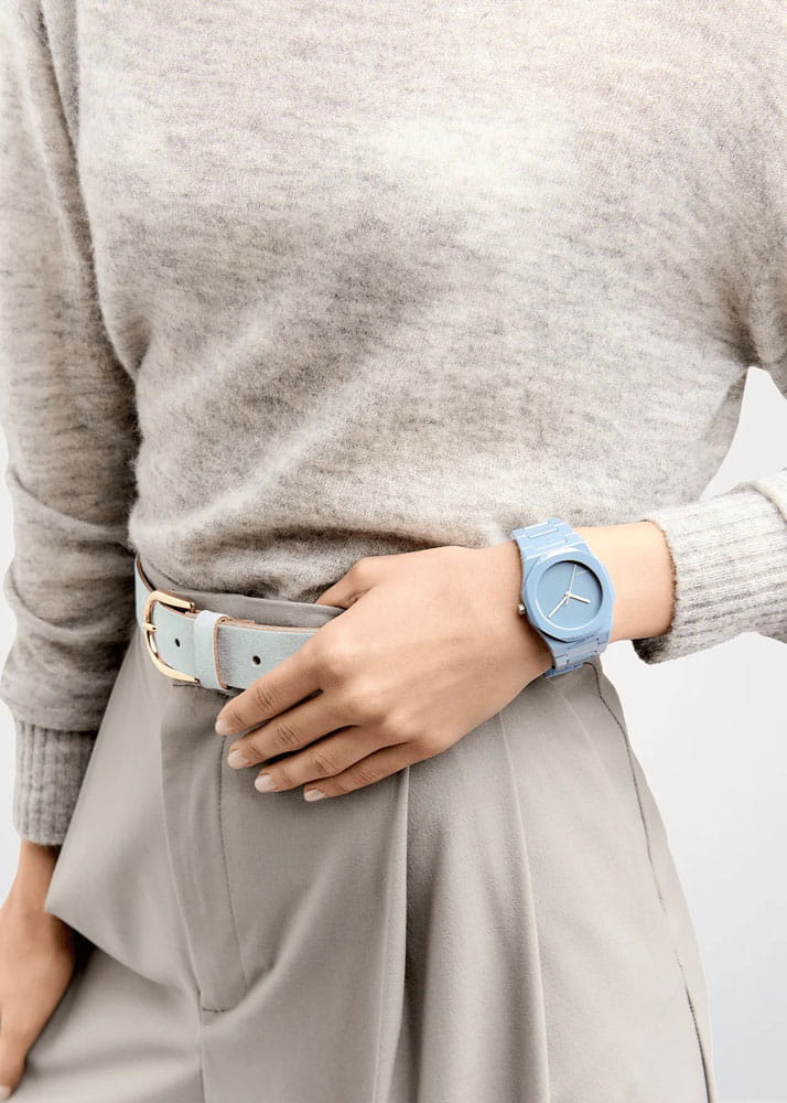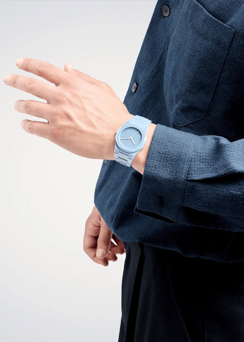 Часы D1 Milano Ceramic Pure Indigo CEBU05 – роскошный аксессуар для современных женщин и мужчин. Кварцевые часы с корпусом из голубой керамики. Минималистичный дизайн циферблата, защищенный прочным сапфировым стекломСапфировое стеклоПрочный и надёжный материал из кристалла сапфира синтетического происхождения, характеризующийся особой твёрдостью и устойчивостью к царапинам и повреждениям. с антибликовым покрытиемАнтибликовое покрытиеСлой оксида металла в 0,13-0,3 микрон, благодаря которому стекло часов не бликует и не отражает свет. Антибликовое покрытие уменьшает отражение света в 10 раз, обеспечивая отличную читаемость показателей циферблата., привлекает внимание своей сдержанной красотой. Циферблат лаконичный, без индексов, с надписью бренда. Изысканные стрелки из латуни с люминесцентным покрытиемЛюминесцентное покрытиеПозволяет считывать показания времени в темноте. Производители наносят на стрелки, часовые индексы, безель или поверхность циферблата светонакопительный состав, дающий холодное свечение.. Стальная задняя крышка с PVD-покрытиемPVDУльтратонкое покрытие наносится в технике вакуумного напыления, сочетает в себе нитрид титана особой прочности со слоем золота или оксида хрома. Несёт в себе декоративную или защитную функцию. закреплена на 4 винтах, что обеспечивает надежность конструкции. Элегантный керамический браслет с застёжкой «бабочка» с кнопкамиЗастёжка "бабочка"Такой вид застёжки дополняется предохранителями, помогающими избежать случайного раскрытия браслета. Обладают изящным исполнением. .  Водозащита 50 метров защищает часы от брызг и дождя, делая их подходящими для повседневного использования. Часы сочетают в себе классический дизайн и современные технологии производства.