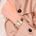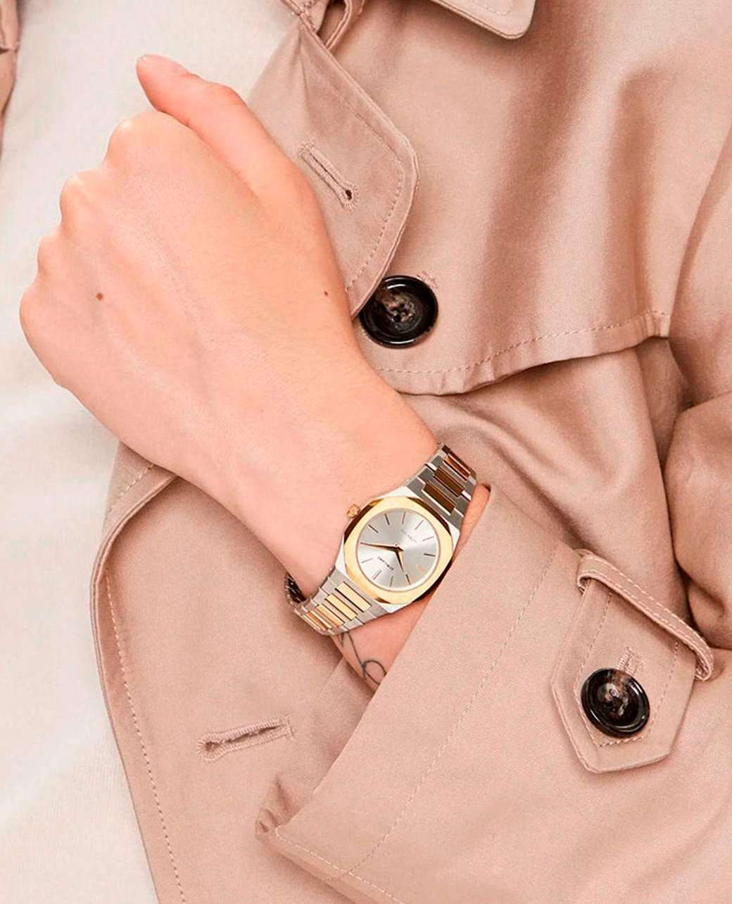 Женские наручные часы D1 Milano UTBL34 из коллекции Ultra Thin сочетают в себе элегантный дизайн и современные технологии. Модель обладает круглым корпусом диаметром 30 мм, изготовленным из нержавеющей стали, что обеспечивает высокую устойчивость к внешним воздействиям. БезельБезельВнешний ободок, закрепляющий стекло. В спортивных часах так называется поворотное кольцо с делениями на циферблате, выполняет роль таймера – замеряет отрезки времени на шкале. Неподвижный безель – элемент декора. Однонаправленно вращающийся безель на дайверских часах позволяет фиксировать моменты погружения и выныривания на поверхность. с PVD-покрытиемPVDУльтратонкое покрытие наносится в технике вакуумного напыления, сочетает в себе нитрид титана особой прочности со слоем золота или оксида хрома. Несёт в себе декоративную или защитную функцию. золотого цвета. Для защиты циферблата используется сапфировое стеклоСапфировое стеклоПрочный и надёжный материал из кристалла сапфира синтетического происхождения, характеризующийся особой твёрдостью и устойчивостью к царапинам и повреждениям., которое эффективно противостоит царапинам и механическим повреждениям. Часы оснащены кварцевым механизмом Miyota 1L22, гарантирующим точное время без необходимости подзаводки. Водонепроницаемость модели достигает 5 атмосфер (50 метров), что позволяет использовать их при контакте с водой, например, во время мытья рук или дождя. Браслет выполнен из нержавеющей стали с частичным PVD-покрытиемPVDУльтратонкое покрытие наносится в технике вакуумного напыления, сочетает в себе нитрид титана особой прочности со слоем золота или оксида хрома. Несёт в себе декоративную или защитную функцию. на раскладной застёжкеРаскладная застёжкаТакой тип застёжки используется только на браслетах из металла. Она никогда не раскрывается полностью, происходит разделение на 2 и более частей. Раскладывающая застёжка снизит вероятность потери часов к минимуму., обеспечивающей комфортное ношение и безопасность. Циферблат серебристого цвета с узором Light Sunray придает часам особую изысканность и делает их идеальным выбором для повседневного использования или особых случаев.