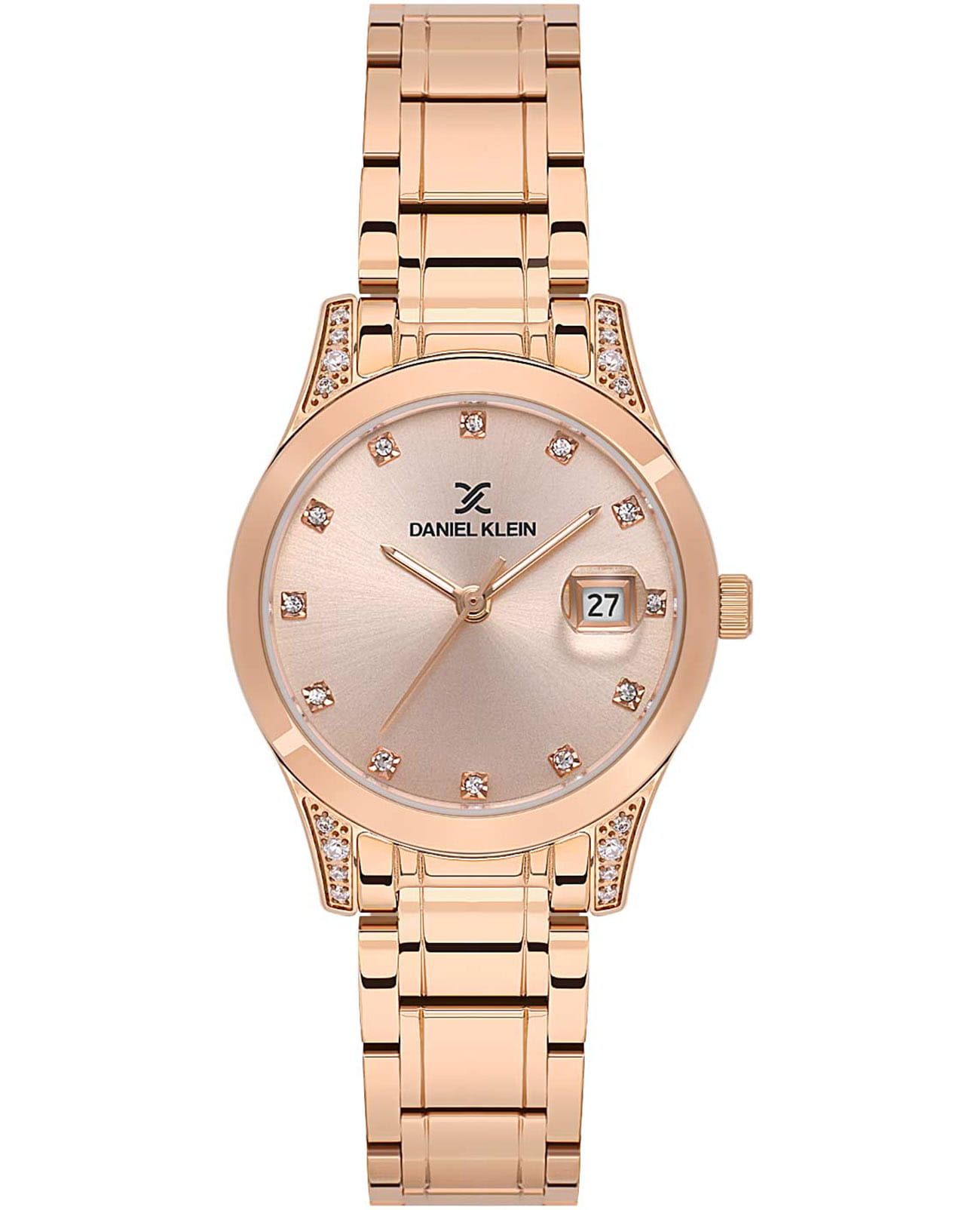 Женские кварцевые часы Daniel Klein — это интересный аксессуар, который станет ярким акцентом в образе. Корпус диаметром 30 мм выполнен из металла с IP-покрытиемIP-покрытиеМетод ионного напыления. Демонстрирует повышенную устойчивость к истиранию, окислению и химическим веществам. Под воздействием высокого давления и температуры около 1500°C молекулы металла надёжно соединяются с частицами корпуса часов.. Циферблат золотистого цвета выполнен по технологии Sunray («солнечные лучи») и оформлен точками с кристаллами и стрелками. Окошко даты расположено в положении 3 часов и оснащено увеличительным стеклом (Cyclops). Циферблат защищён минеральным стекломМинеральное стеклоМинеральное стекло представляет собой искусственно выращенный минерал кварца. Такое стекло отличается особой устойчивостью к повреждениям и царапинам. Уступает по некоторым качествам сапфировому стеклу.. Часы оснащены стальным браслетом с IP-покрытиемIP-покрытиеМетод ионного напыления. Демонстрирует повышенную устойчивость к истиранию, окислению и химическим веществам. Под воздействием высокого давления и температуры около 1500°C молекулы металла надёжно соединяются с частицами корпуса часов. на раскладной застёжкеРаскладная застёжкаТакой тип застёжки используется только на браслетах из металла. Она никогда не раскрывается полностью, происходит разделение на 2 и более частей. Раскладывающая застёжка снизит вероятность потери часов к минимуму.. Водонепроницаемость 30 м позволяет использовать часы в повседневных условиях. Идеальный выбор для тех, кто ценит турецкое качество и элегантный дизайн.