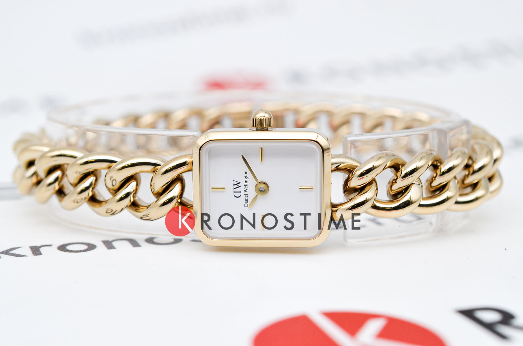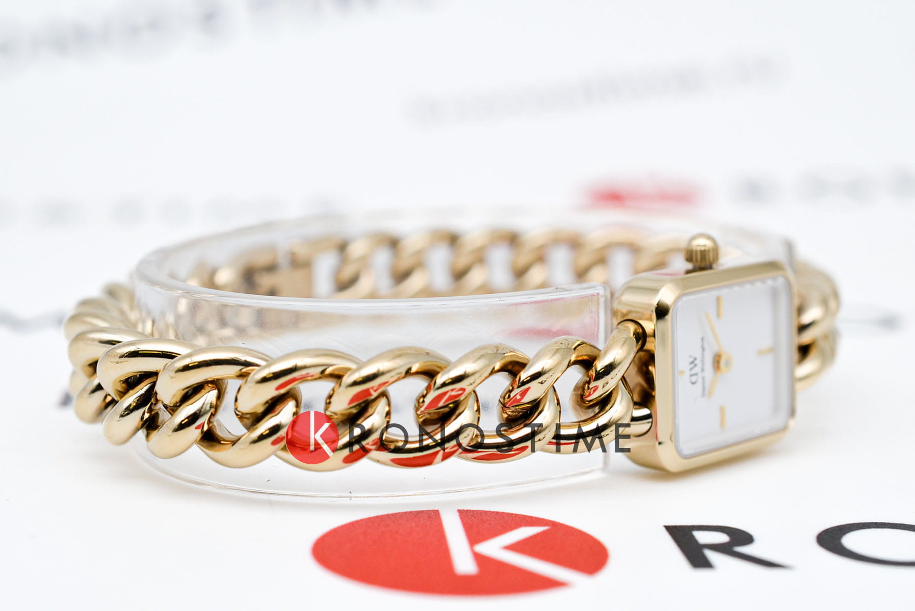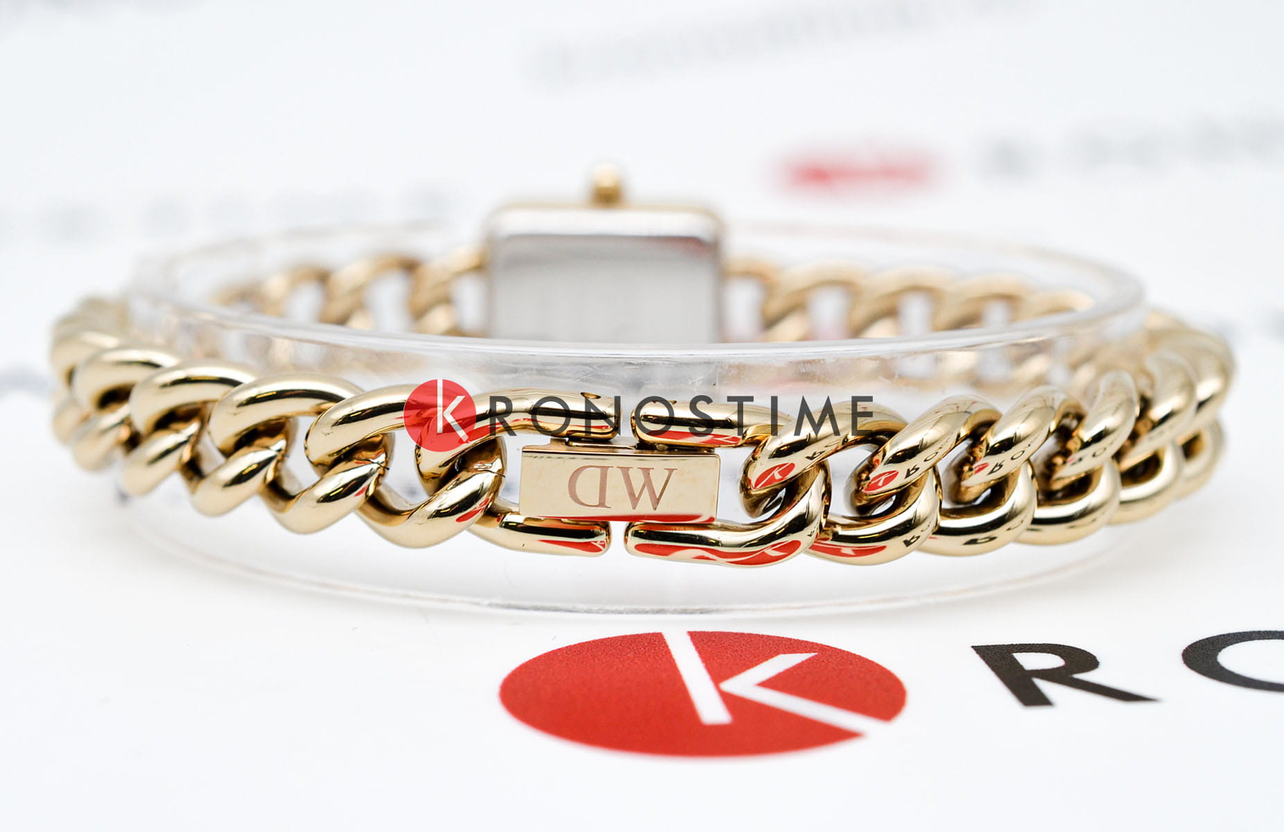 Daniel Wellington Jolie Chain DW00100836 — изящные женские часы в фирменном стиле бренда с акцентом на минимализм и украшение в виде массивного браслета-цепочки. Прямоугольный корпус аккуратного размера подчёркивает современный силуэт, а браслет с широкими звеньями создаёт эффект ювелирного аксессуара.Минеральное стеклоМинеральное стеклоМинеральное стекло представляет собой искусственно выращенный минерал кварца. Такое стекло отличается особой устойчивостью к повреждениям и царапинам. Уступает по некоторым качествам сапфировому стеклу. устойчивое к мелким механическим повреждениям. Циферблат оформлен лаконично: тонкие метки и стрелки обеспечивают лёгкость восприятия времени, оставляя пространство для чистой эстетики. Корпус и браслет покрыты PVD-покрытиемPVDУльтратонкое покрытие наносится в технике вакуумного напыления, сочетает в себе нитрид титана особой прочности со слоем золота или оксида хрома. Несёт в себе декоративную или защитную функцию., что гарантирует стойкость к царапинам и сохранение блеска. Модель работает на точном кварцевом механизме, не требующем ежедневного завода, а надёжная застёжка обеспечивает комфортное ношение. Daniel Wellington Jolie Chain — это часы и стильное украшение одновременно, идеально подходящее для акцента в повседневном и вечернем образе.