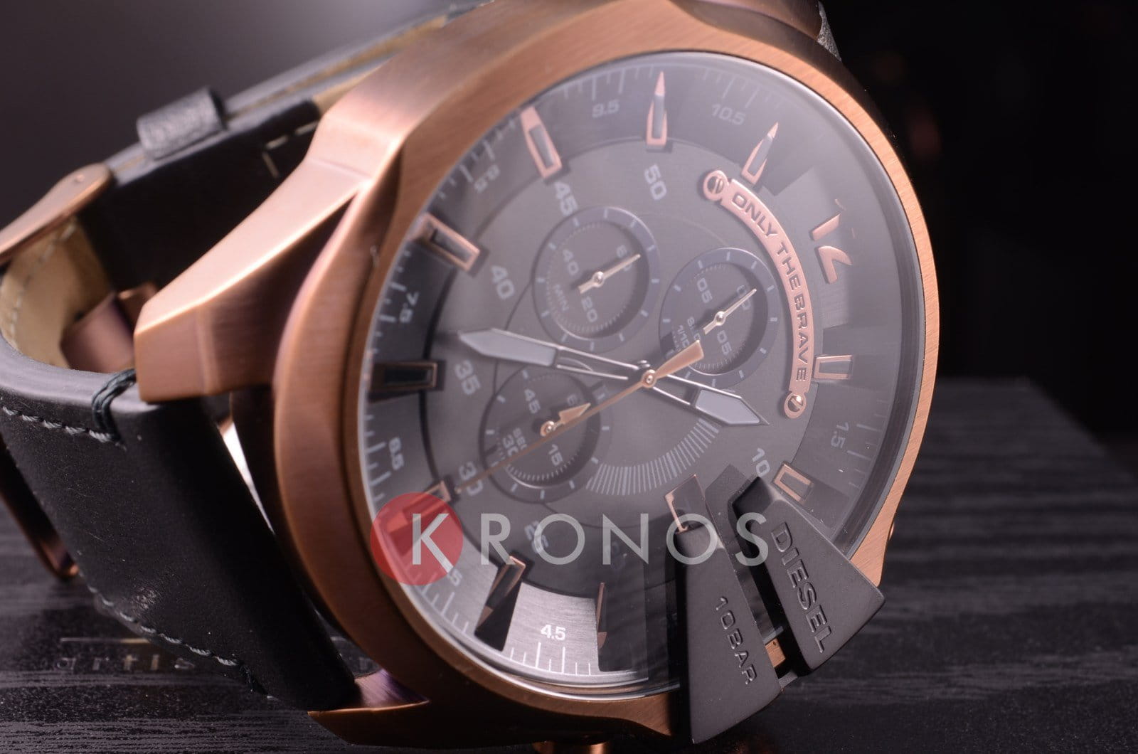 Мужские часы Diesel DZ4459 из коллекции Mega Chief Chronograph представляют собой спортивный хронографХронографФункция позволяет измерять отрезки времени с особой точностью: часы, минуты, секунды. Верным признаком хронографа является наличие на циферблате 3 дополнительных окошек-счётчиков. для дополнения повседневного образа.
