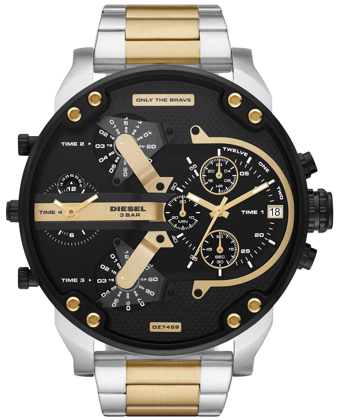 Мужские американские часы с 4 часовыми поясами Diesel Mr. Daddy 2.0 DZ7459, кварцевый механизм с высокой точностью. Класс водозащиты: 30 метров, позволит защитить корпус от случайных брызг или капель дождя. Корпус часов изготовлен из стали, цвета.