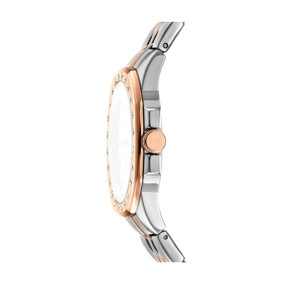DKNY Brooklyn Maxi DK1L011M0085 —женские кварцевые часы, вдохновленные бунтарским духом Нью-Йорка. Корпус из нержавеющей стали диаметром 36 мм и минеральное стеклоМинеральное стеклоМинеральное стекло представляет собой искусственно выращенный минерал кварца. Такое стекло отличается особой устойчивостью к повреждениям и царапинам. Уступает по некоторым качествам сапфировому стеклу. обеспечивает защиту от царапин, а водонепроницаемость 5 ATM (50 метров) выдерживает активный ритм города. Металлический браслет с IP-покрытиемIP-покрытиеМетод ионного напыления. Демонстрирует повышенную устойчивость к истиранию, окислению и химическим веществам. Под воздействием высокого давления и температуры около 1500°C молекулы металла надёжно соединяются с частицами корпуса часов. на раскладной застёжкеРаскладная застёжкаТакой тип застёжки используется только на браслетах из металла. Она никогда не раскрывается полностью, происходит разделение на 2 и более частей. Раскладывающая застёжка снизит вероятность потери часов к минимуму. подчеркивает универсальность, сочетаясь с деловыми и повседневными образами. БезельБезельВнешний ободок, закрепляющий стекло. В спортивных часах так называется поворотное кольцо с делениями на циферблате, выполняет роль таймера – замеряет отрезки времени на шкале. Неподвижный безель – элемент декора. Однонаправленно вращающийся безель на дайверских часах позволяет фиксировать моменты погружения и выныривания на поверхность. инкрустирован кристаллами. Лаконичные линии, акцент на крупном формате и практичность делают модель идеальным выбором для женщин, ценящих дерзкий городской образ, сочетающий энергию мегаполиса с универсальной элегантностью.