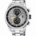 Часы Festina Timeless Chronograph F20694/4 представляют собой сочетание изысканного дизайна и современных технологий, создающих идеальный аксессуар для тех, кто ценит стиль и функциональность. Эти часы оснащены надежным кварцевым механизмом, который обеспечивает безупречную точность хода, а наличие хронографаХронографФункция позволяет измерять отрезки времени с особой точностью: часы, минуты, секунды. Верным признаком хронографа является наличие на циферблате 3 дополнительных окошек-счётчиков. с секундомеромСекундомерСекундоме́р — прибор, способный измерять интервалы времени с точностью до долей секунды. позволяет измерять промежутки времени с высочайшей точностью, что делает их неотъемлемым атрибутом для активных и целеустремленных людей. На серебристый циферблат нанесена шкала тахиметраТахиметрРазмеченная шкала, располагается на ободке или безеле часов. Тахиметр позволяет рассчитать скорость на определённом участке пути, расстояние измеряется в километрах или милях.. Стрелки и метки, покрытые люминесцентным покрытиемЛюминесцентное покрытиеПозволяет считывать показания времени в темноте. Производители наносят на стрелки, часовые индексы, безель или поверхность циферблата светонакопительный состав, дающий холодное свечение., обеспечивают отличную видимость в условиях низкой освещенности, позволяя вам легко определять время в любой ситуации. Окошко даты, расположенное на отметке «3 часа», поможет вам всегда оставаться в курсе текущих дел. Минеральное стеклоМинеральное стеклоМинеральное стекло представляет собой искусственно выращенный минерал кварца. Такое стекло отличается особой устойчивостью к повреждениям и царапинам. Уступает по некоторым качествам сапфировому стеклу., используемое в конструкции этих часов, отличается повышенной устойчивостью к царапинам и превосходной прозрачностью, гарантируя, что циферблат всегда останется чистым и легко читаемым. Благодаря классу водозащиты до 100 метров, эти часы станут вашим надежным спутником в водных приключениях, позволяя вам свободно плавать, нырять и заниматься другими водными видами спорта. Корпус часов изготовлен из прочной нержавеющей стали, что обеспечивает не только долговечность, но и элегантность внешнего вида. Стальной браслет с раскладной застёжкойРаскладная застёжкаТакой тип застёжки используется только на браслетах из металла. Она никогда не раскрывается полностью, происходит разделение на 2 и более частей. Раскладывающая застёжка снизит вероятность потери часов к минимуму. гарантирует комфортное и безопасное ношение, идеально подходящее для ежедневного использования или специальных случаев.