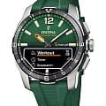 Мужские гибридные умные часы Festina Connected D — это современный аксессуар, сочетающий классический аналоговый дизайн и передовые технологии. Корпус диаметром 44 мм выполнен из лёгкого титана. БезельБезельВнешний ободок, закрепляющий стекло. В спортивных часах так называется поворотное кольцо с делениями на циферблате, выполняет роль таймера – замеряет отрезки времени на шкале. Неподвижный безель – элемент декора. Однонаправленно вращающийся безель на дайверских часах позволяет фиксировать моменты погружения и выныривания на поверхность. с IP-покрытиемIP-покрытиеМетод ионного напыления. Демонстрирует повышенную устойчивость к истиранию, окислению и химическим веществам. Под воздействием высокого давления и температуры около 1500°C молекулы металла надёжно соединяются с частицами корпуса часов.. Циферблат зелёного цвета оформлен штрихами и стрелками. В центре циферблата расположен небольшой OLED-дисплей для отображения цифровой информации. Циферблат защищён сапфировым стекломСапфировое стеклоПрочный и надёжный материал из кристалла сапфира синтетического происхождения, характеризующийся особой твёрдостью и устойчивостью к царапинам и повреждениям.. Часы оснащены функциями BluetoothBluetoothСовременная технология, позволяющая синхронизировать часы с телефоном и переносить данные. Часы с Bluetooth расширяют возможности вашего смартфона и делают его использование ещё более удобным., мирового времениМировое время Полезное часовое усложнение, отображающее время в основных городах и известных областях по всему миру, оно связано с часовыми поясами, удобно для путешественников и бизнесменов. , будильника, таймера обратного отсчёта, секундомера, а также уведомлений о звонках, сообщениях и напоминаниях. Стрелки и метки с люминесцентным покрытиемЛюминесцентное покрытиеПозволяет считывать показания времени в темноте. Производители наносят на стрелки, часовые индексы, безель или поверхность циферблата светонакопительный состав, дающий холодное свечение. обеспечивают читаемость в темноте. Часы оснащены силиконовым ремешком зелёного цвета на стандартной пряжке. Водонепроницаемость 30 м позволяет использовать часы в повседневных условиях. Идеальный выбор для тех, кто ценит стиль, точность и интеллектуальные функции.