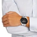 Кварцевые часы с хронографом Три малых циферблата на 60 секунд, 30 минут и 24 часа Корпус диаметром 44 мм выполнен из нержавеющей стали Стальной браслет шириной 22 мм