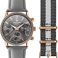 Кварцевые часы Водостойкость WR 50 Часы, минуты, секунды, дата, день недели, 12/24х часовой формат времени Люминесцентные стрелки Корпус выполнен из нержавеющей стали с PVD покрытием Диаметр корпуса 30 мм Сапфировое стекло с антибликовым покрытием Кожаный ремешок В комплекте дополнительный текстильный ремешок Часы украшены бриллиантом