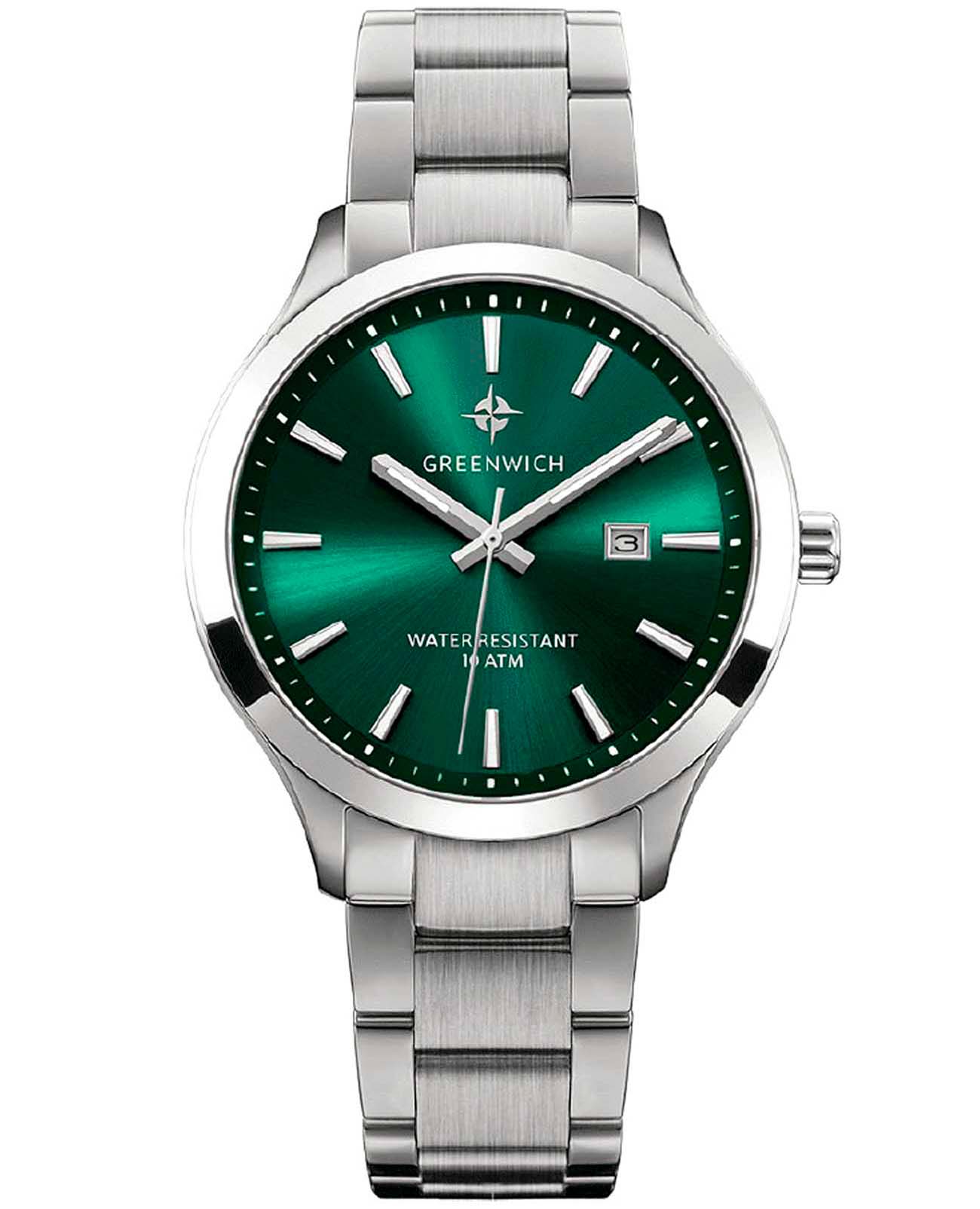 Мужские наручные часы Greenwich Helm GW 041.10.37 представляют собой классический вариант для повседневной носки. Корпус из нержавеющей стали диаметром 42 мм сбалансирован и элегантен. Минеральное стеклоМинеральное стеклоМинеральное стекло представляет собой искусственно выращенный минерал кварца. Такое стекло отличается особой устойчивостью к повреждениям и царапинам. Уступает по некоторым качествам сапфировому стеклу. защищает циферблат от царапин и обеспечивает отличную читаемость при любом освещении. Люминесцентное покрытиеЛюминесцентное покрытиеПозволяет считывать показания времени в темноте. Производители наносят на стрелки, часовые индексы, безель или поверхность циферблата светонакопительный состав, дающий холодное свечение. стрелок и меток позволит следить за временем даже в полной темноте. Стальной браслет на раскладной застёжкеРаскладная застёжкаТакой тип застёжки используется только на браслетах из металла. Она никогда не раскрывается полностью, происходит разделение на 2 и более частей. Раскладывающая застёжка снизит вероятность потери часов к минимуму. идеально дополняют дизайн часов, обеспечивая комфортное ношение. Окошко даты находится в положении 3 часа. Класс водозащиты: 100 метров, позволит плавать, нырять и заниматься другими водными видами спорта. Эмблема мореплавательского духа символизирует удачу, стремление достигнуть поставленной цели. Часы характеризуются традиционными формами, лаконичным исполнением, что делает модель элегантным дополнением к деловому костюму.