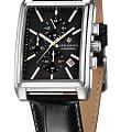 Водозащита до 5 ATM (50 метров) защищает от брызг и дождя. Ремешок из натуральной чёрной кожи с прошивкой и классической застёжкой обеспечивает комфортное ношение и надёжную фиксацию.