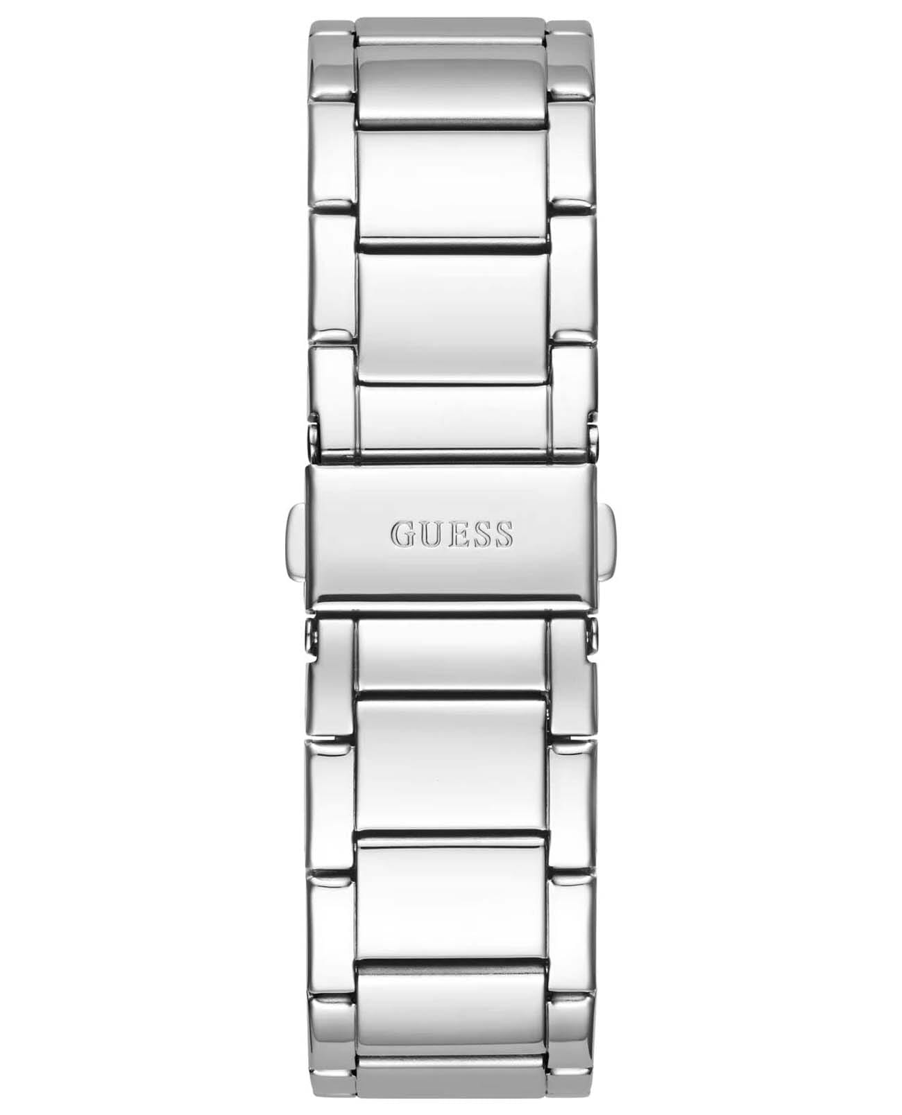 Женские американские часы Guess Plastic GW0104L1, кварцевый механизм с высокой точностью. Класс водозащиты: 50 метров, позволит защитить корпус от случайных брызг или капель дождя. Корпус часов изготовлен из стали, серебристого цвета.