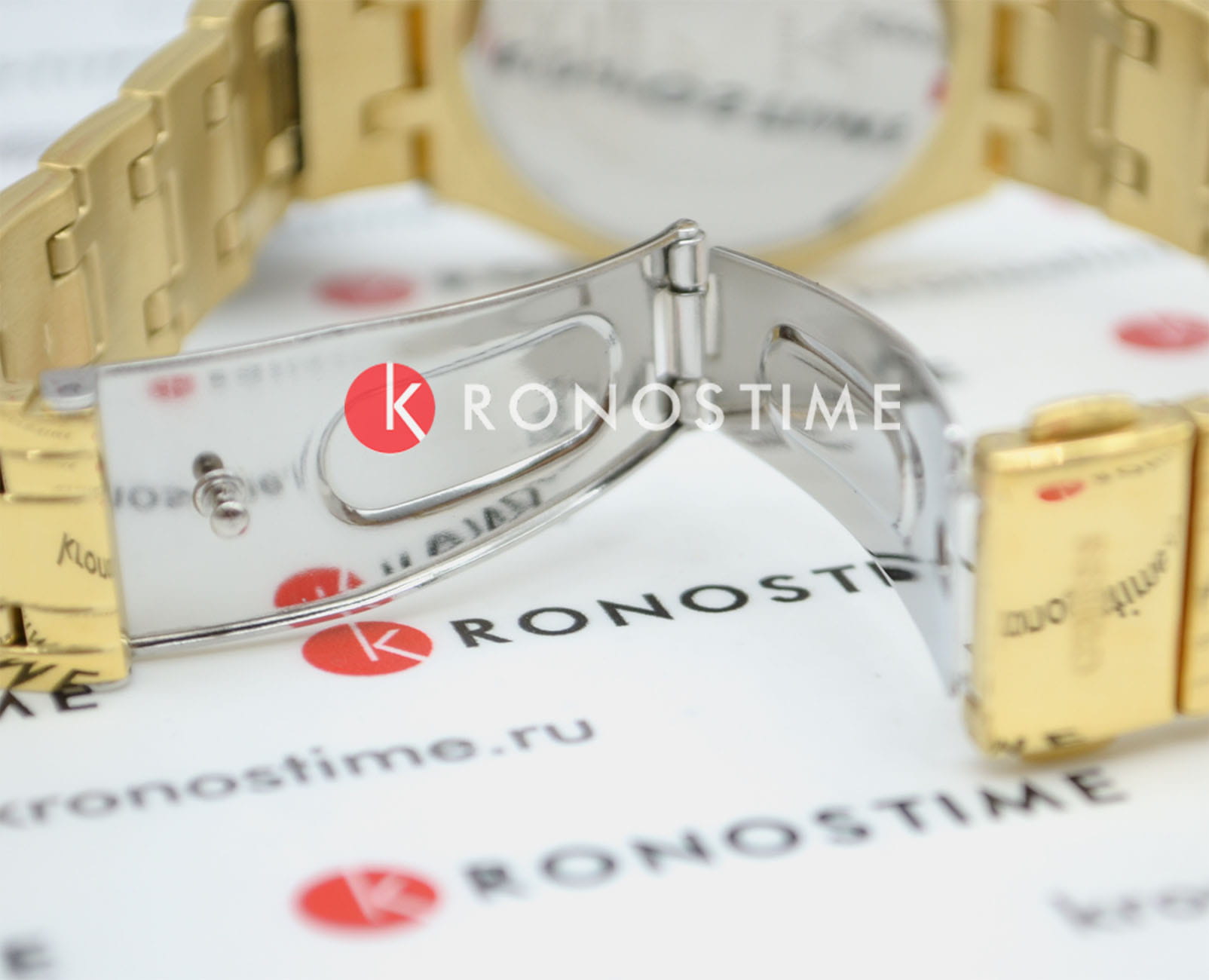 Стальной корпус круглой формы. Отсчет данных ведут три элегантные стрелки. Прочный браслет с раскладной застёжкойРаскладная застёжкаТакой тип застёжки используется только на браслетах из металла. Она никогда не раскрывается полностью, происходит разделение на 2 и более частей. Раскладывающая застёжка снизит вероятность потери часов к минимуму. будет надежно сидеть на запястье. Элегантный безельБезельВнешний ободок, закрепляющий стекло. В спортивных часах так называется поворотное кольцо с делениями на циферблате, выполняет роль таймера – замеряет отрезки времени на шкале. Неподвижный безель – элемент декора. Однонаправленно вращающийся безель на дайверских часах позволяет фиксировать моменты погружения и выныривания на поверхность. с ослепительными кристаллами. Вставлено минеральное стеклоМинеральное стеклоМинеральное стекло представляет собой искусственно выращенный минерал кварца. Такое стекло отличается особой устойчивостью к повреждениям и царапинам. Уступает по некоторым качествам сапфировому стеклу. с закалкой. Кварцевый механизм.