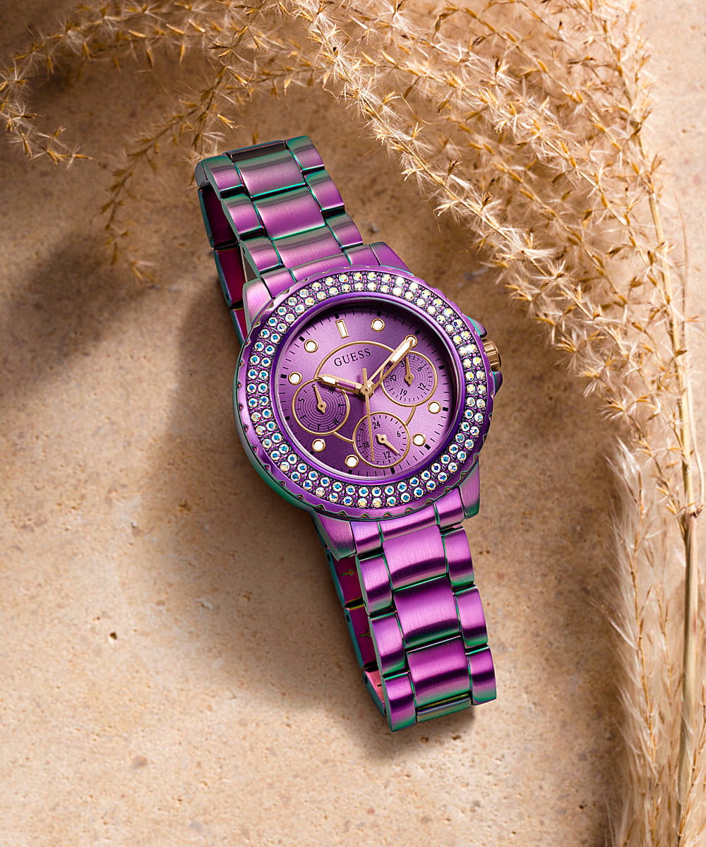 Женские наручные часы Guess Sport Steel GW0410L4 с минеральным стекломМинеральное стеклоМинеральное стекло представляет собой искусственно выращенный минерал кварца. Такое стекло отличается особой устойчивостью к повреждениям и царапинам. Уступает по некоторым качествам сапфировому стеклу., кварцевый механизм с высокой точностью. 12-ти и 24-х часовой формат времени, число и день недели вынесены на отдельные циферблаты. Метки в виде точек. Класс водозащиты: 30 метров, позволит защитить корпус от случайных брызг или капель дождя. Корпус часов изготовлен из стали с IP-покрытиемIP-покрытиеМетод ионного напыления. Демонстрирует повышенную устойчивость к истиранию, окислению и химическим веществам. Под воздействием высокого давления и температуры около 1500°C молекулы металла надёжно соединяются с частицами корпуса часов.. Браслет с раскладной застёжкойРаскладная застёжкаТакой тип застёжки используется только на браслетах из металла. Она никогда не раскрывается полностью, происходит разделение на 2 и более частей. Раскладывающая застёжка снизит вероятность потери часов к минимуму..