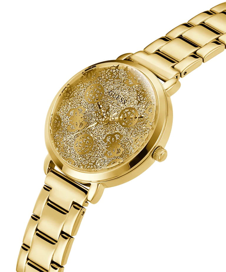 Женские наручные часы с минеральным стекломМинеральное стеклоМинеральное стекло представляет собой искусственно выращенный минерал кварца. Такое стекло отличается особой устойчивостью к повреждениям и царапинам. Уступает по некоторым качествам сапфировому стеклу. Guess GW0670L2, кварцевый механизм с высокой точностью. Класс водозащиты: 30 метров, позволит защитить корпус от случайных брызг или капель дождя. Корпус часов изготовлен из нержавеющей стали с IP-покрытиемIP-покрытиеМетод ионного напыления. Демонстрирует повышенную устойчивость к истиранию, окислению и химическим веществам. Под воздействием высокого давления и температуры около 1500°C молекулы металла надёжно соединяются с частицами корпуса часов.. Стальной браслет с IP-покрытиемIP-покрытиеМетод ионного напыления. Демонстрирует повышенную устойчивость к истиранию, окислению и химическим веществам. Под воздействием высокого давления и температуры около 1500°C молекулы металла надёжно соединяются с частицами корпуса часов. на раскладной застёжкеРаскладная застёжкаТакой тип застёжки используется только на браслетах из металла. Она никогда не раскрывается полностью, происходит разделение на 2 и более частей. Раскладывающая застёжка снизит вероятность потери часов к минимуму..