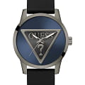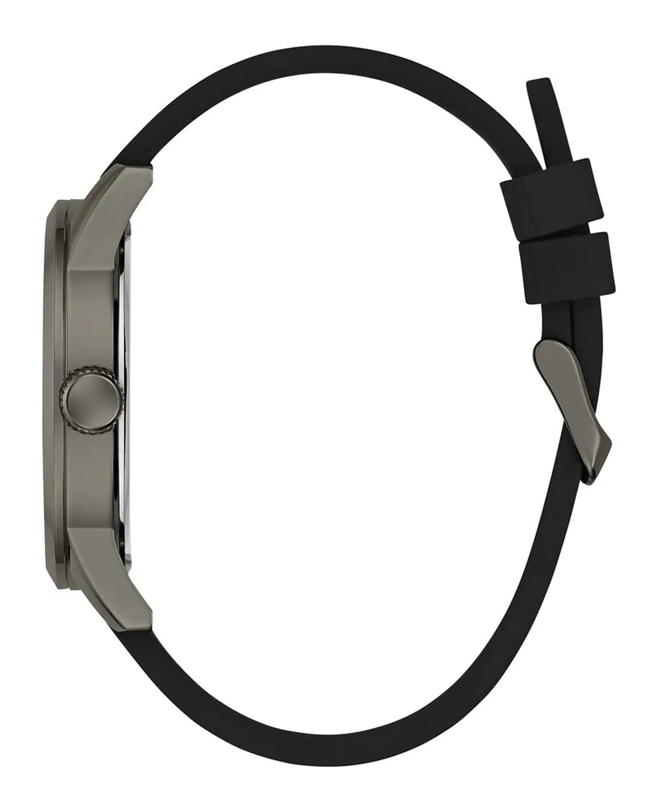 Мужские наручные часы с минеральным стекломМинеральное стеклоМинеральное стекло представляет собой искусственно выращенный минерал кварца. Такое стекло отличается особой устойчивостью к повреждениям и царапинам. Уступает по некоторым качествам сапфировому стеклу. Guess Trend GW0781G5, кварцевый механизм с высокой точностью. Корпус часов изготовлен из стали с IP-покрытиемIP-покрытиеМетод ионного напыления. Демонстрирует повышенную устойчивость к истиранию, окислению и химическим веществам. Под воздействием высокого давления и температуры около 1500°C молекулы металла надёжно соединяются с частицами корпуса часов.. Стрелки с люминесцентным покрытиемЛюминесцентное покрытиеПозволяет считывать показания времени в темноте. Производители наносят на стрелки, часовые индексы, безель или поверхность циферблата светонакопительный состав, дающий холодное свечение.. Класс водозащиты: 50 метров, позволит защитить корпус от случайных брызг или капель дождя. Силиконовый ремешок на стандартной застежке.