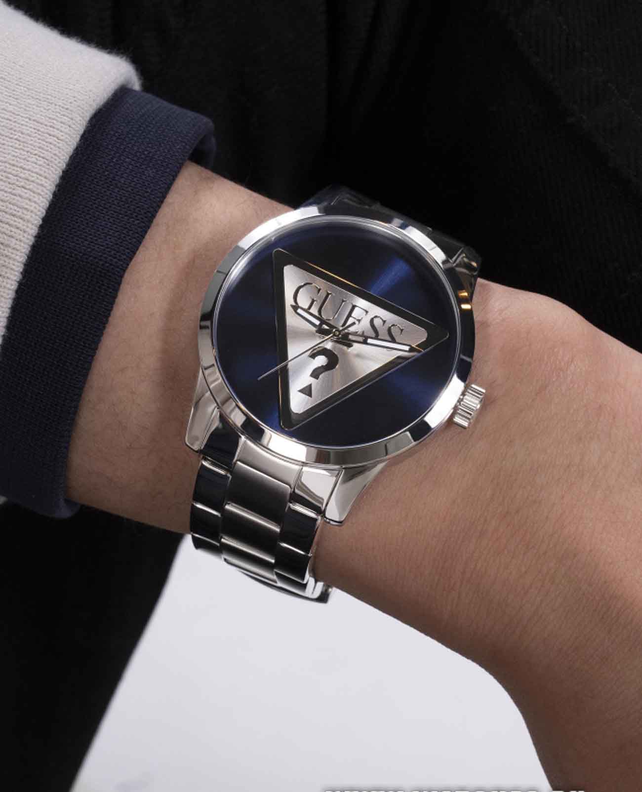 Мужские наручные часы с минеральным стекломМинеральное стеклоМинеральное стекло представляет собой искусственно выращенный минерал кварца. Такое стекло отличается особой устойчивостью к повреждениям и царапинам. Уступает по некоторым качествам сапфировому стеклу. Guess Trend GW0782G3, кварцевый механизм с высокой точностью. Корпус часов изготовлен из стали. Стрелки с люминесцентным покрытиемЛюминесцентное покрытиеПозволяет считывать показания времени в темноте. Производители наносят на стрелки, часовые индексы, безель или поверхность циферблата светонакопительный состав, дающий холодное свечение.. Класс водозащиты: 50 метров, позволит защитить корпус от случайных брызг или капель дождя. Стальной браслет на раскладной застёжкеРаскладная застёжкаТакой тип застёжки используется только на браслетах из металла. Она никогда не раскрывается полностью, происходит разделение на 2 и более частей. Раскладывающая застёжка снизит вероятность потери часов к минимуму..